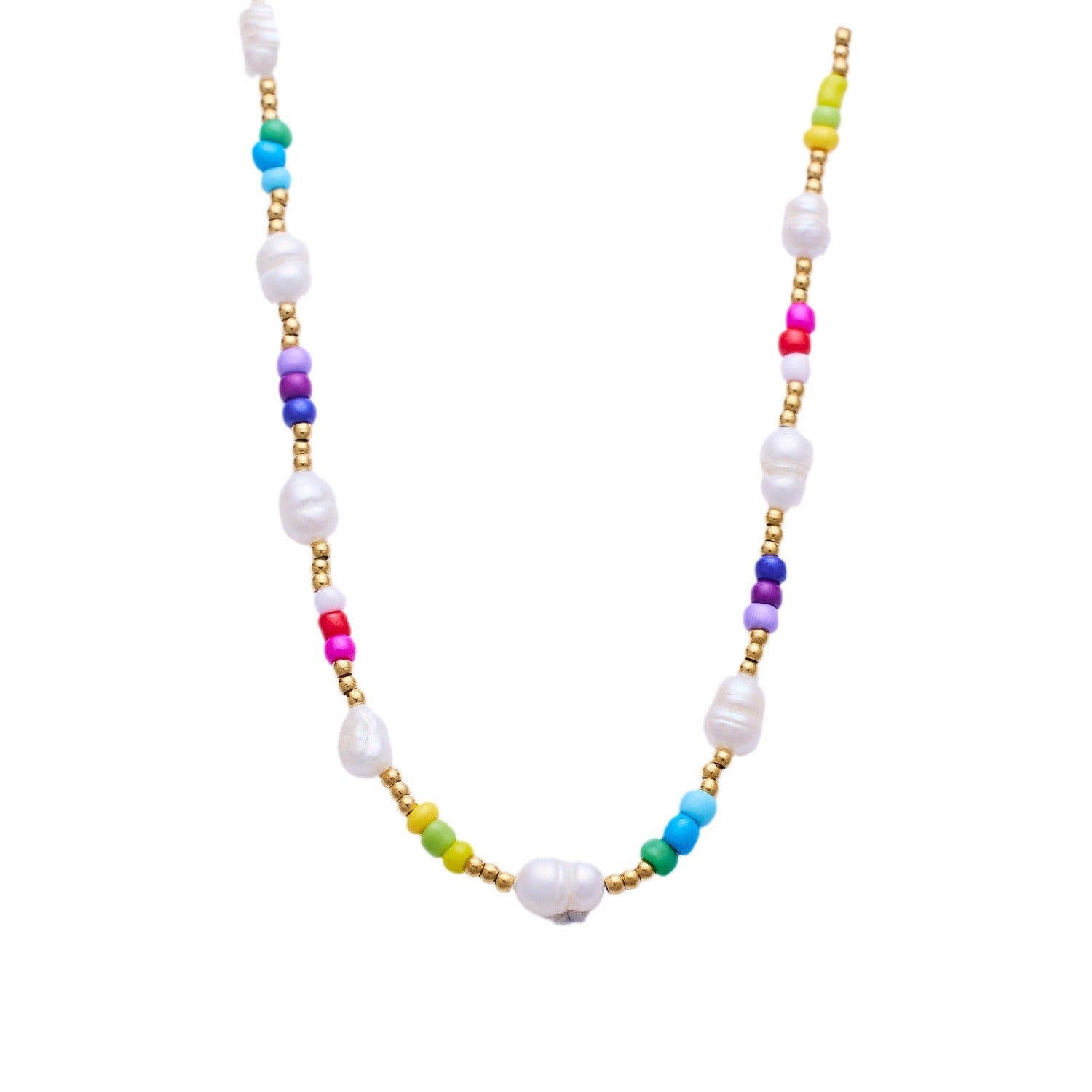 INS Vibe Xiaomi Bead Sweater Chain & Bohemian Collarbone Chain - Colored Pearl 串珠 Titanium Steel Necklace