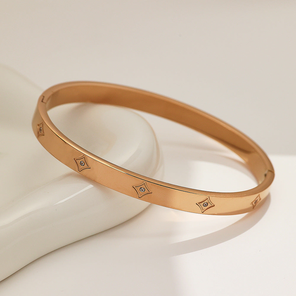 itanium Steel Gold-Plated Bracelet - Fashionable, Minimalist & Versatile C-Shaped Open Buckle Bangle with Design Sense