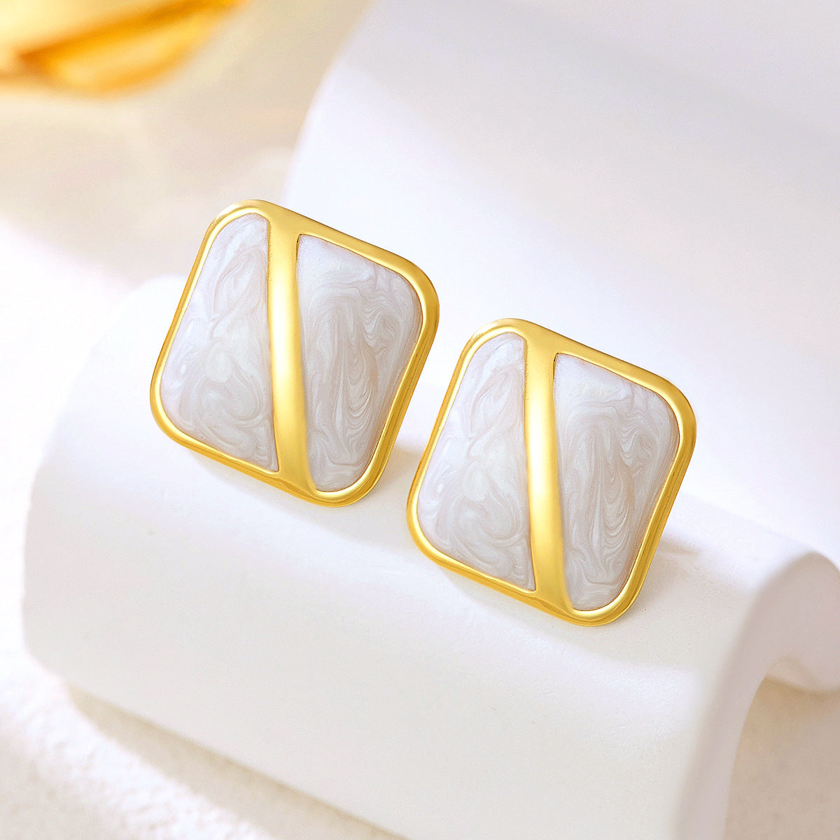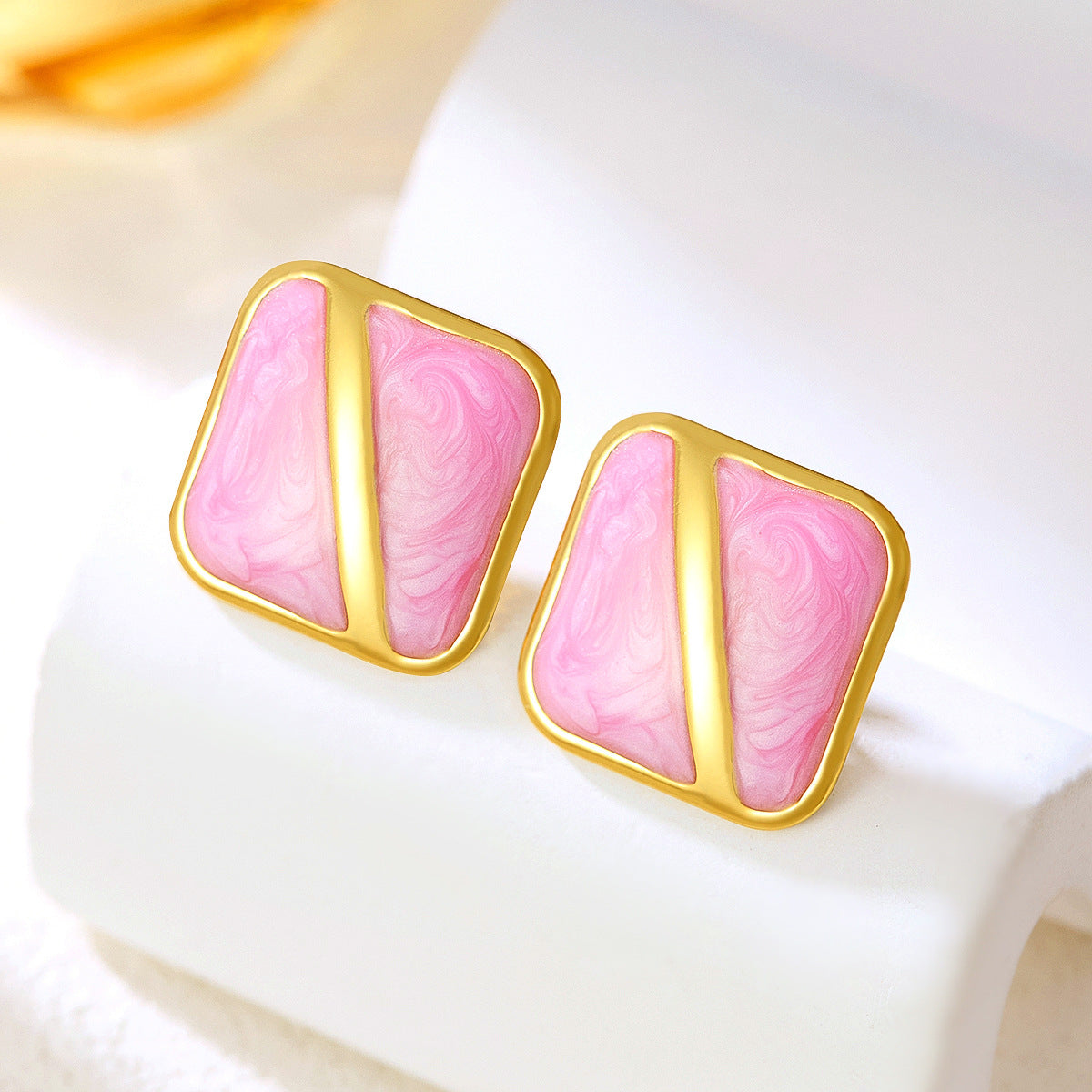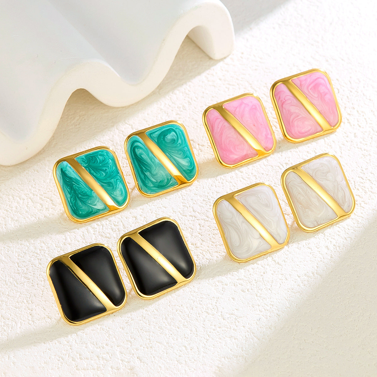 Korean Niche Design Painted Enamel Square Earrings - 2025 New Style Trendy Earrings for Women, Simple Stud Earrings Wholesale