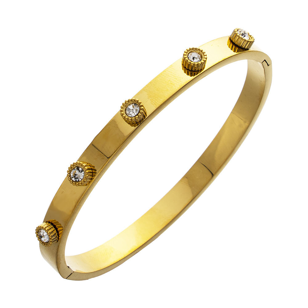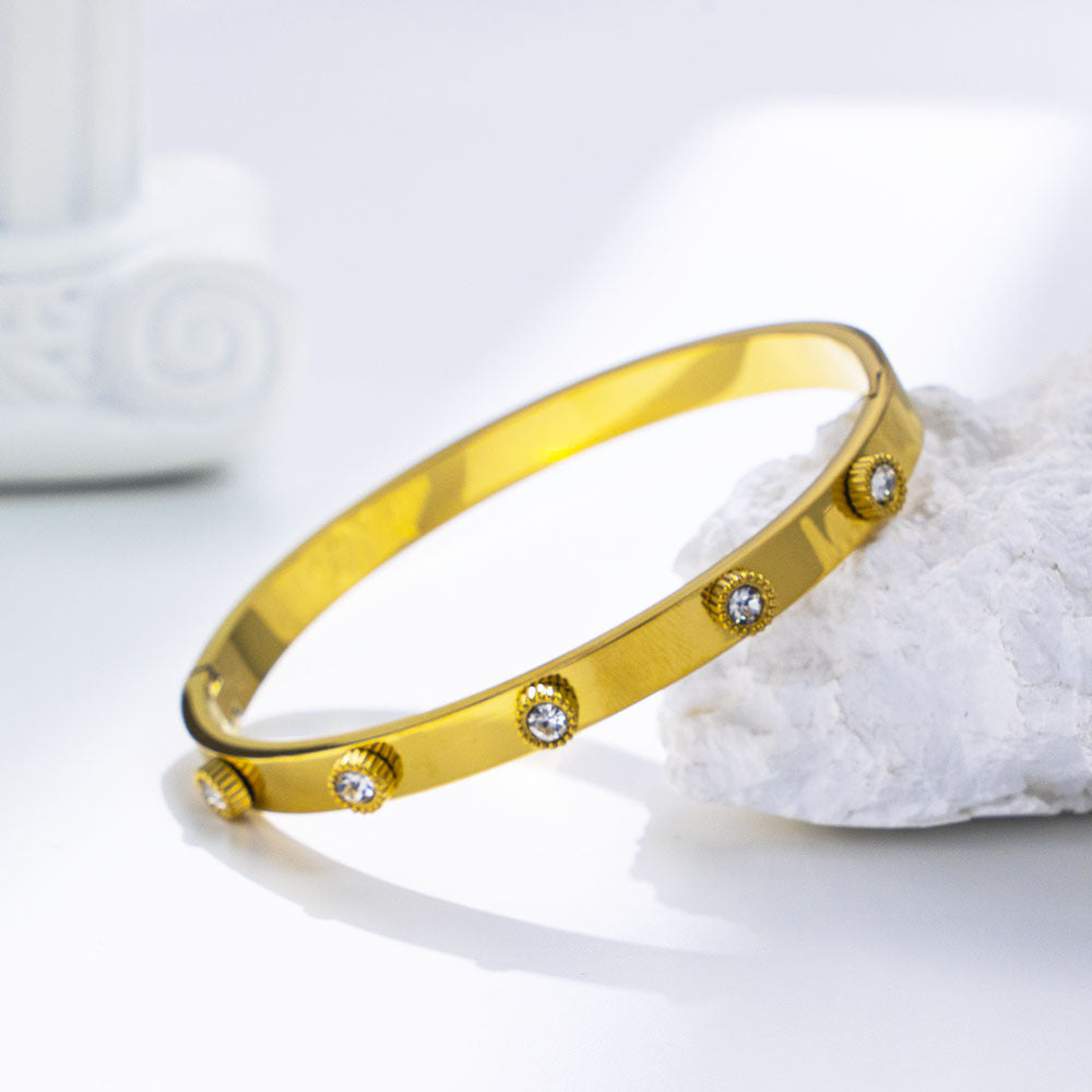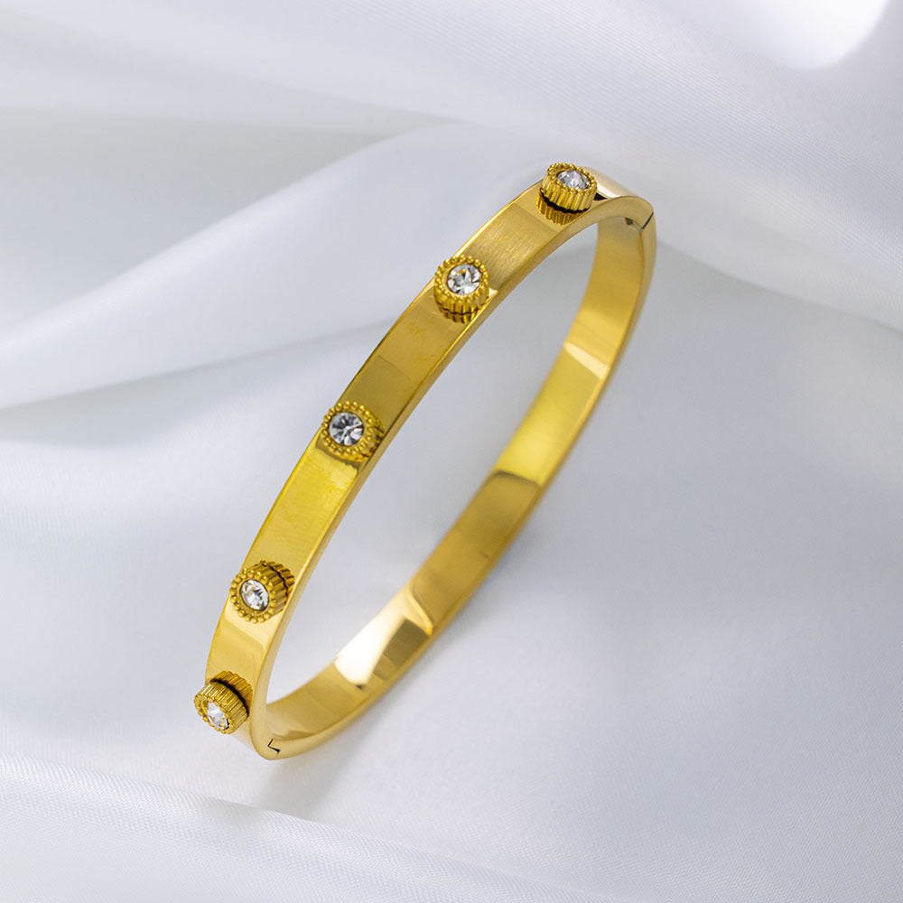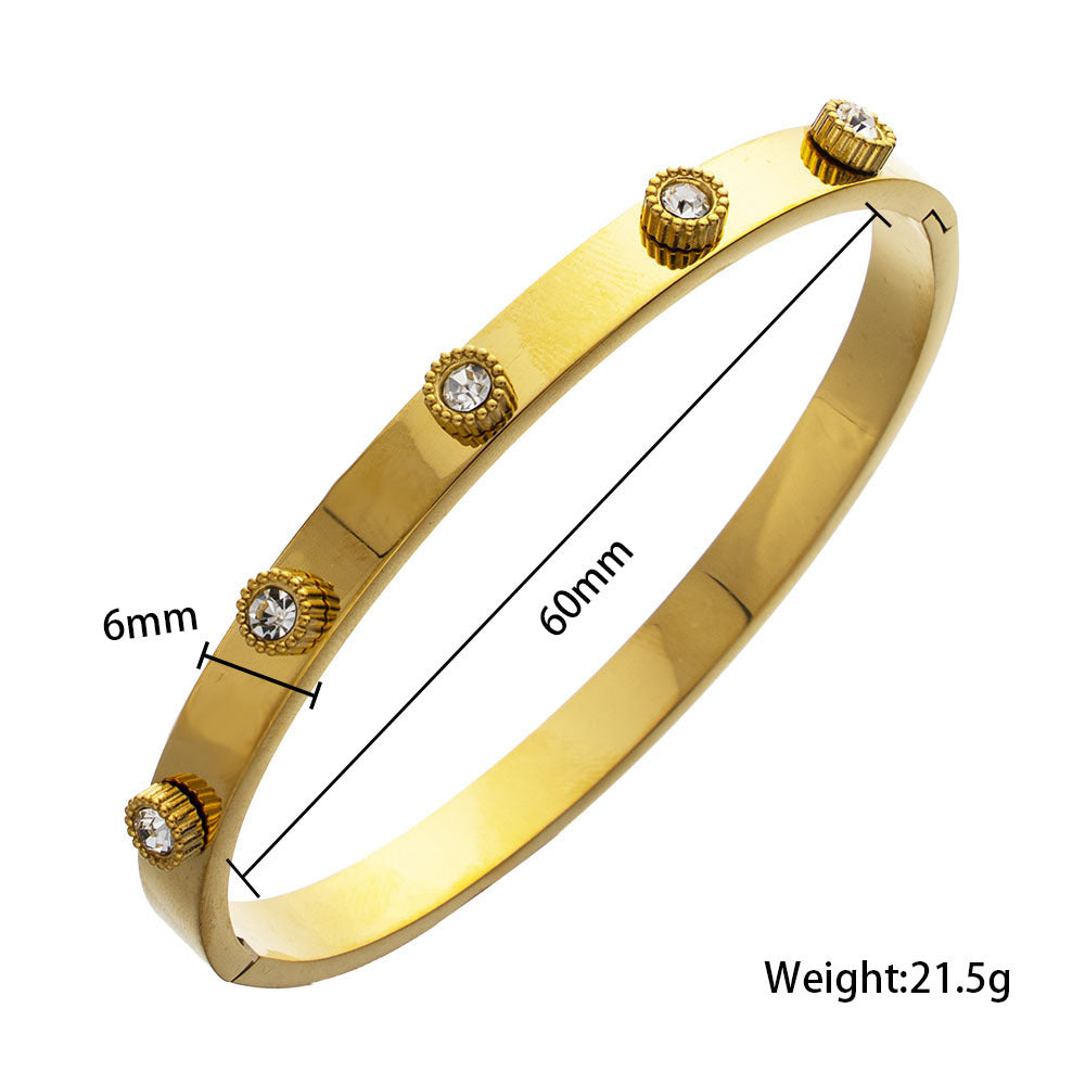 Light Luxury High-End Square Diamond Bracelet - Gold Titanium Steel Buckle for Women