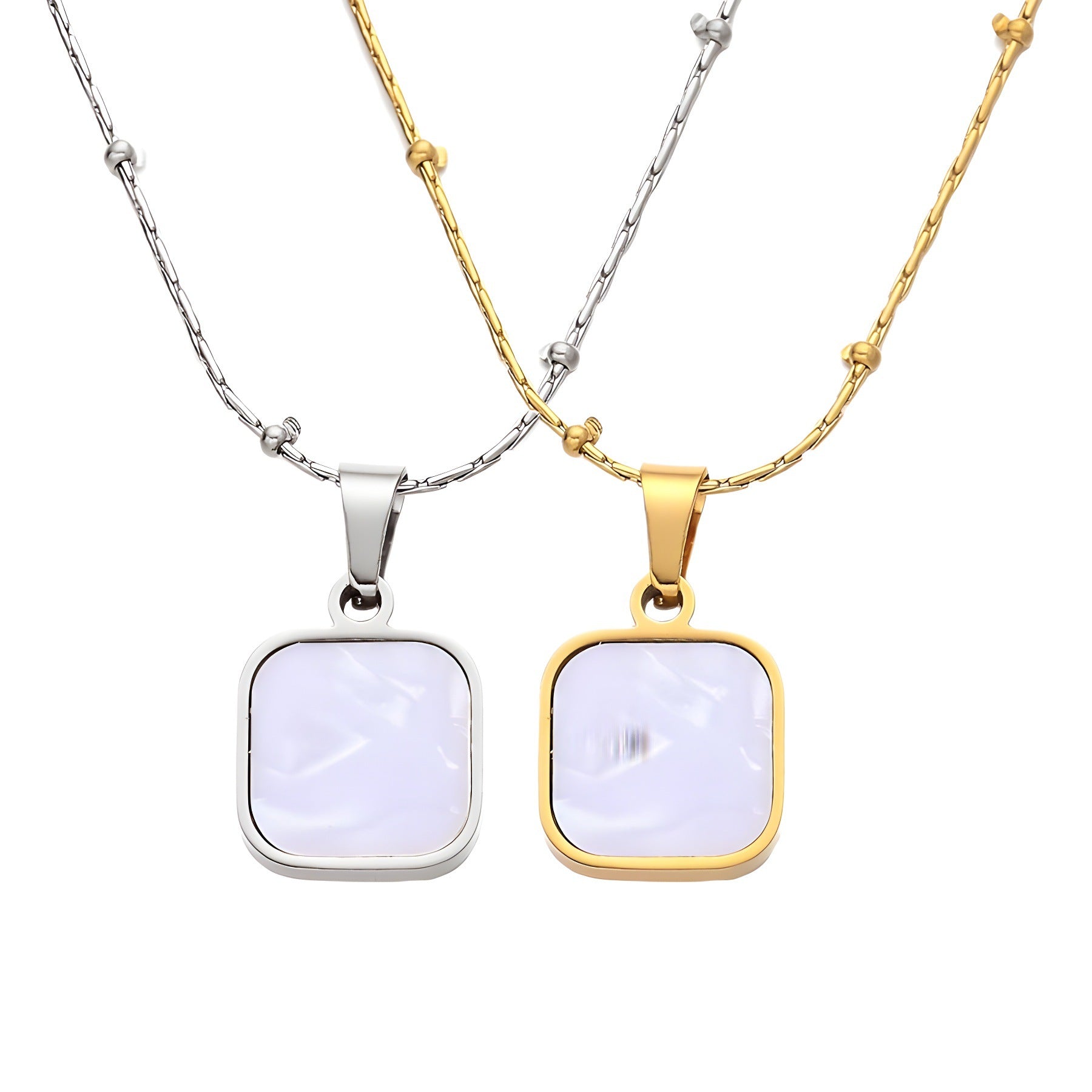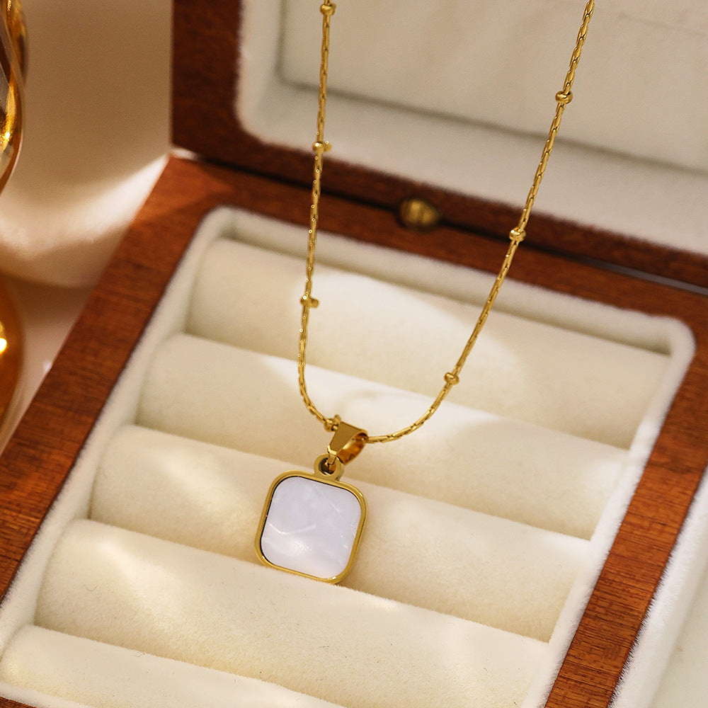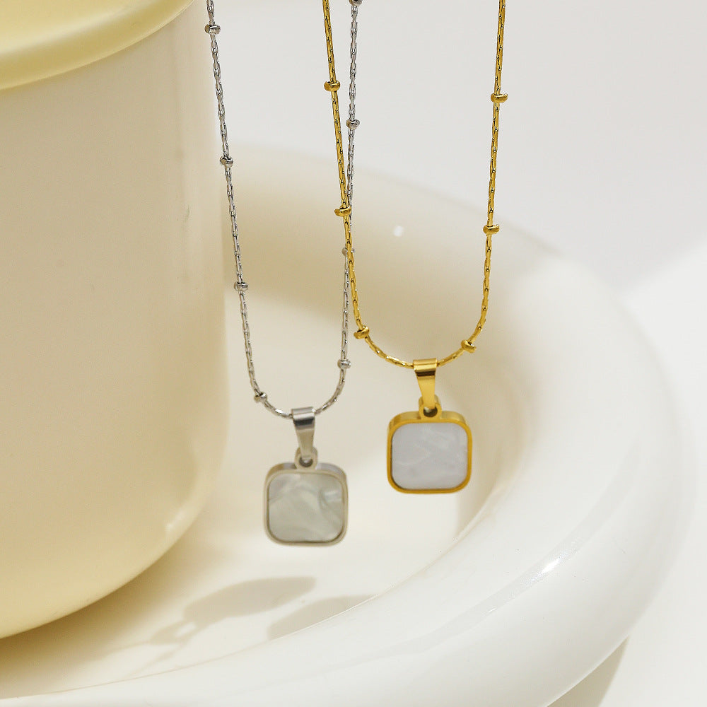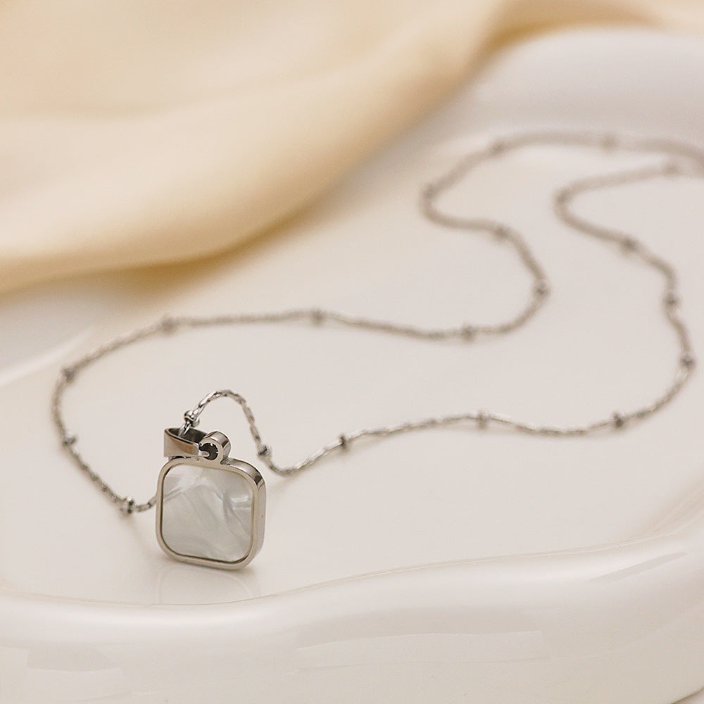 Light Luxury Niche Titanium Steel Necklace - Minimalist Mother-of-Pearl Square Pendant, Cool Elegant Versatile Women's Choker