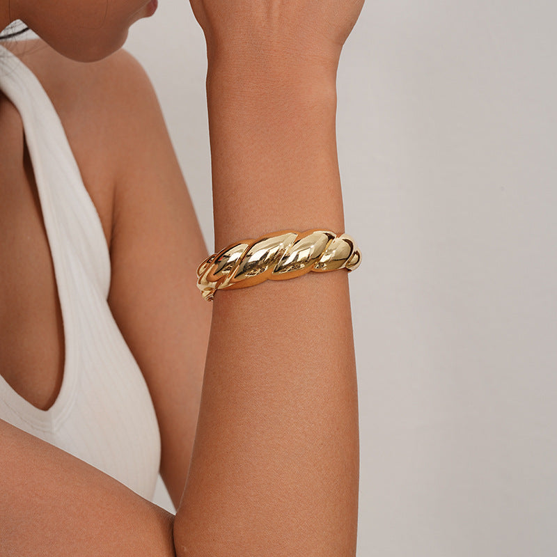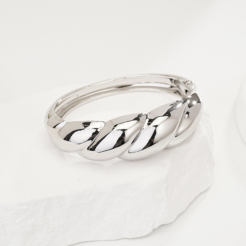 New Fashion Twisted-Braid Bracelet - Niche Design, Metallic High-End Sense, Retro Striped Wristband with Spring Clasp Jewelry