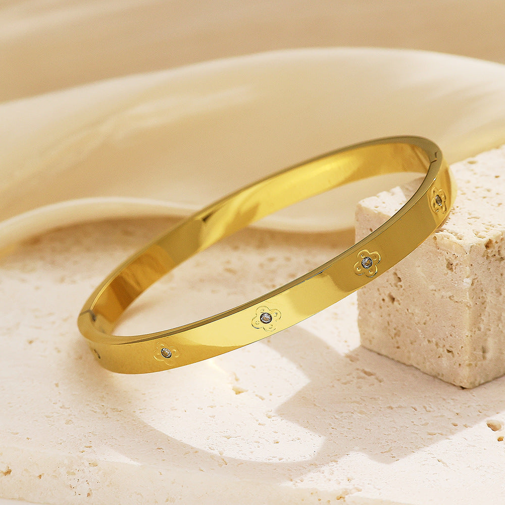 New Style Fashion Light Luxury Titanium Steel Zircon-Embedded High-Quality Vacuum Plated Waterproof Color-Retaining Versatile Bracelet for Women