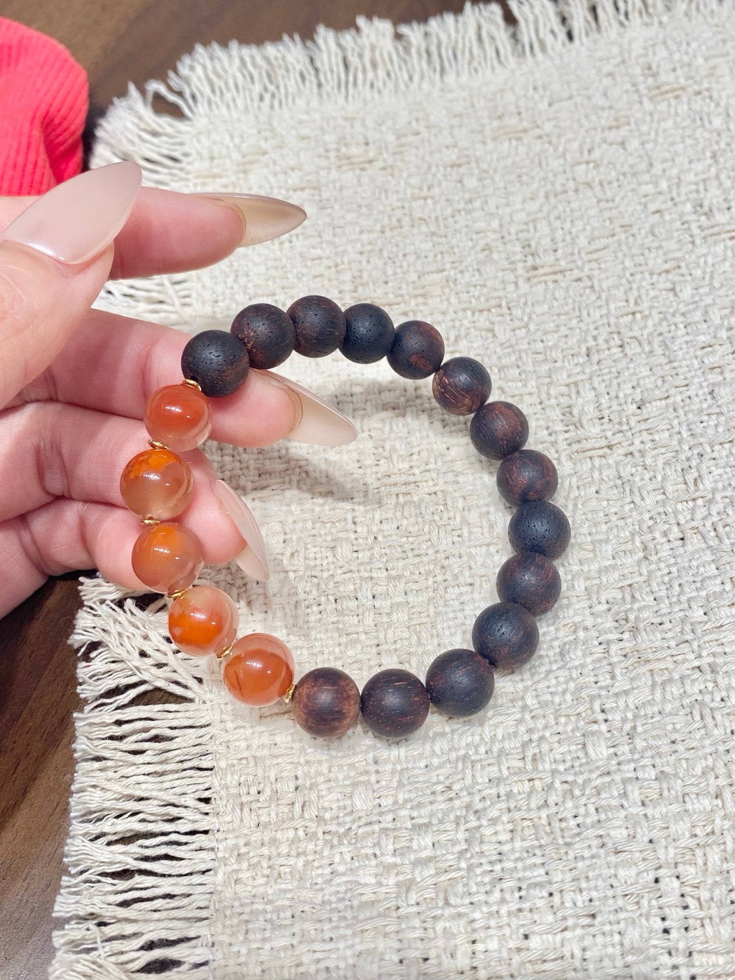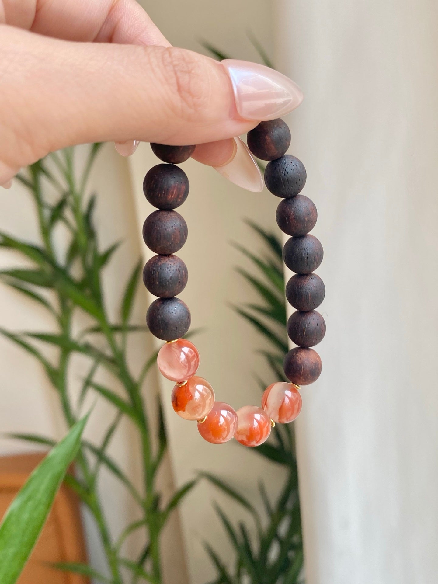 Niche Agarwood Carnelian Sterling Silver Bracelet - Beaded Minimalist Boho-Chic Design, Statement Jewelry for Women