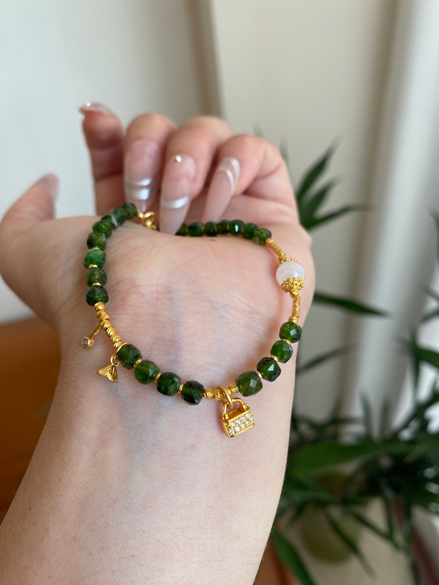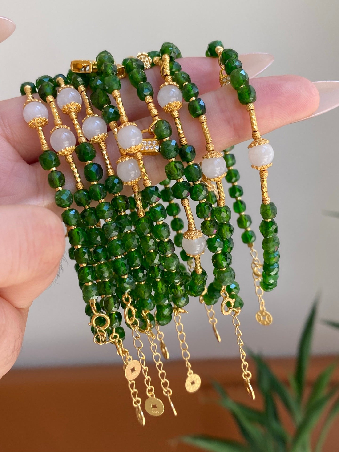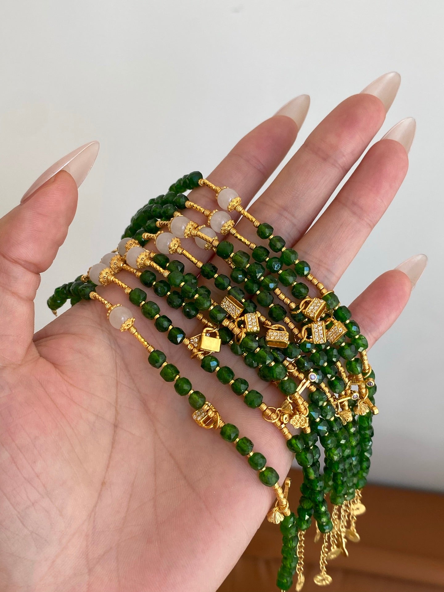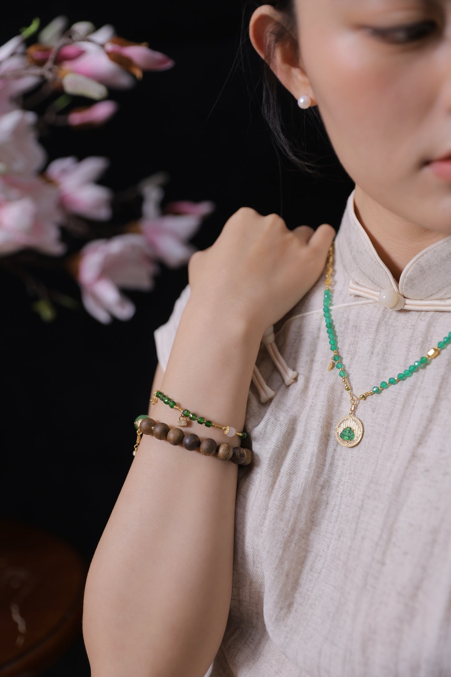 Niche Agarwood Jade Sterling Silver Bracelet Set - Gold-Tone Chinese Design, Lucky Statement Jewelry for Women