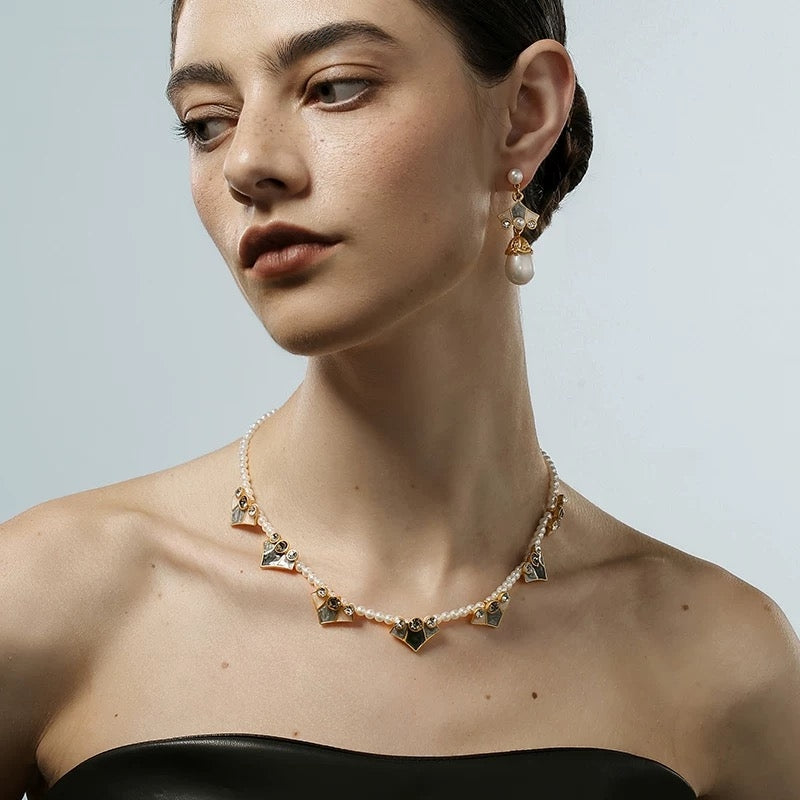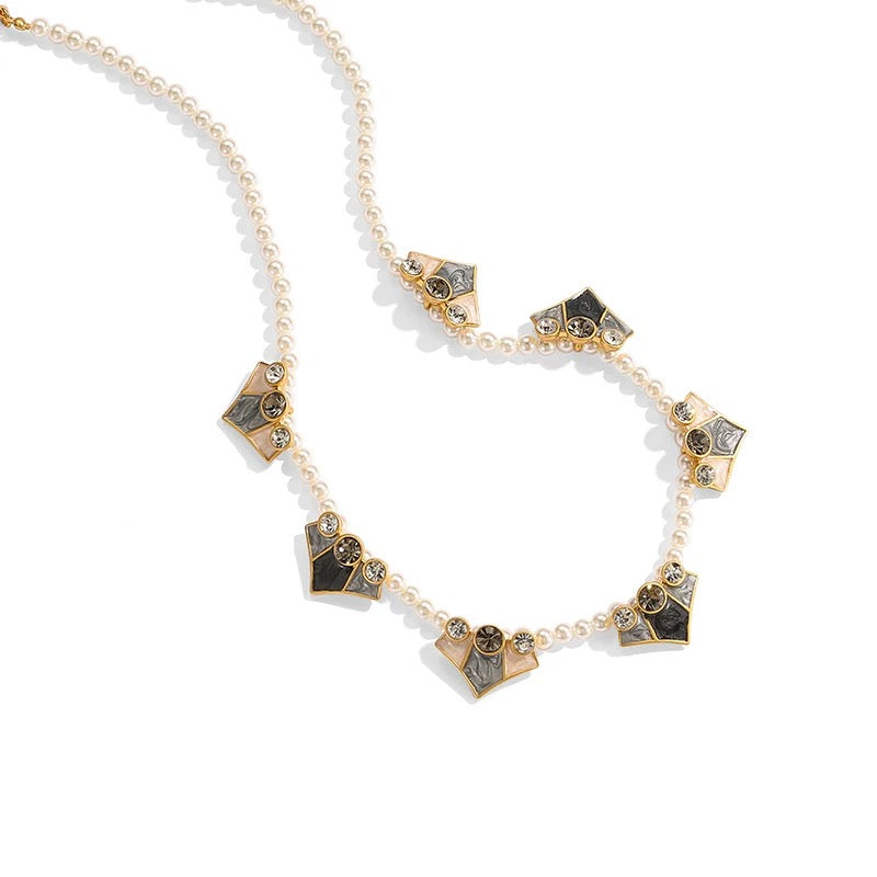 Niche Art Deco Pearl & Enamel Gold-Tone Jewelry Set - Retro Elegant Design, Statement Jewelry for Women