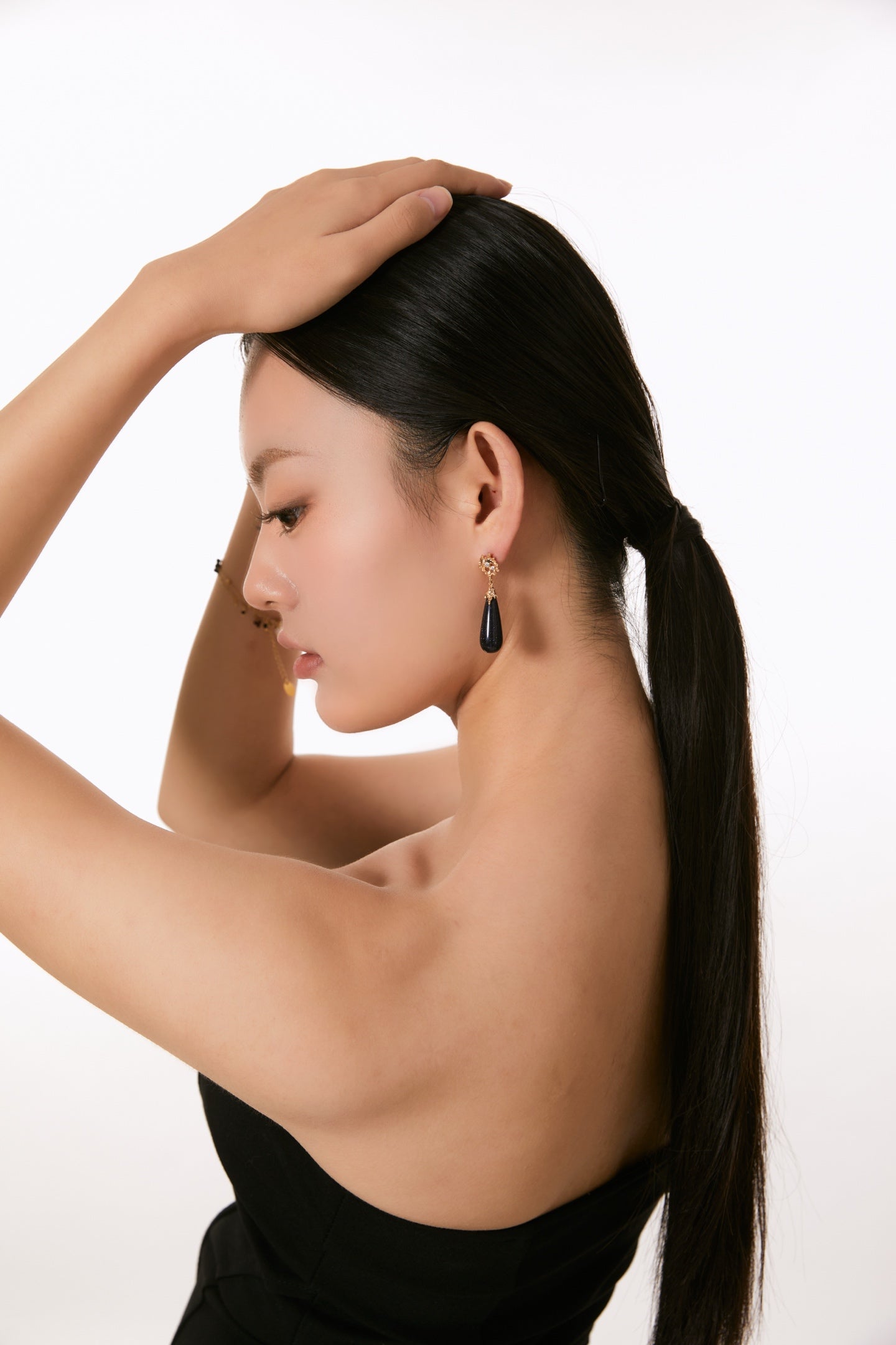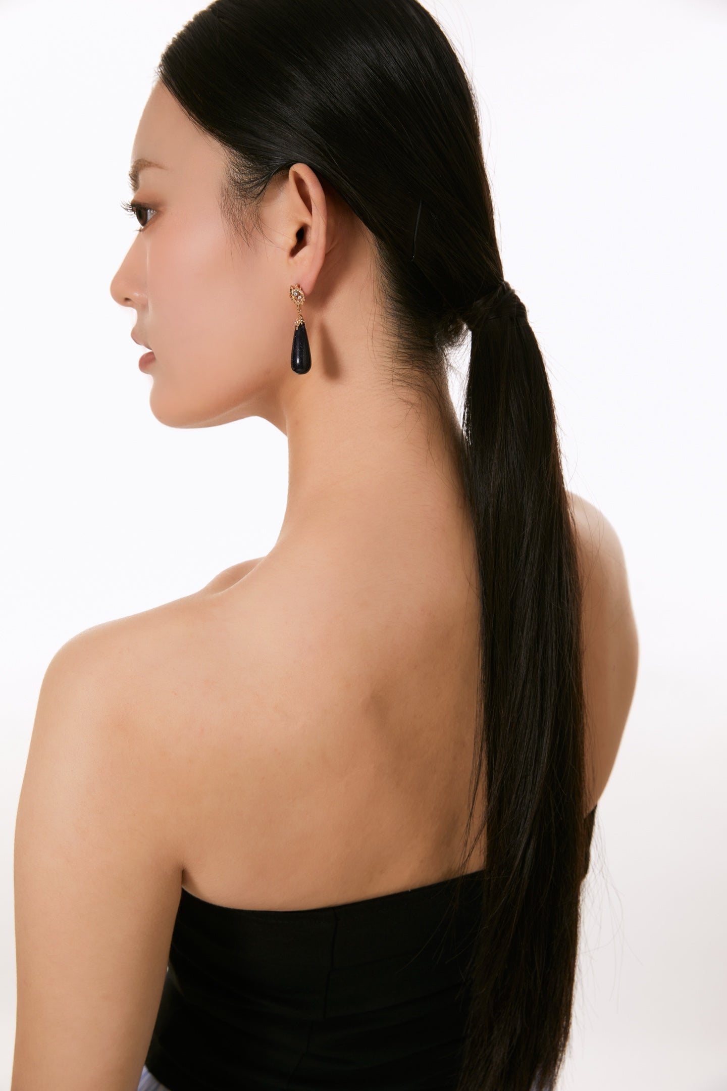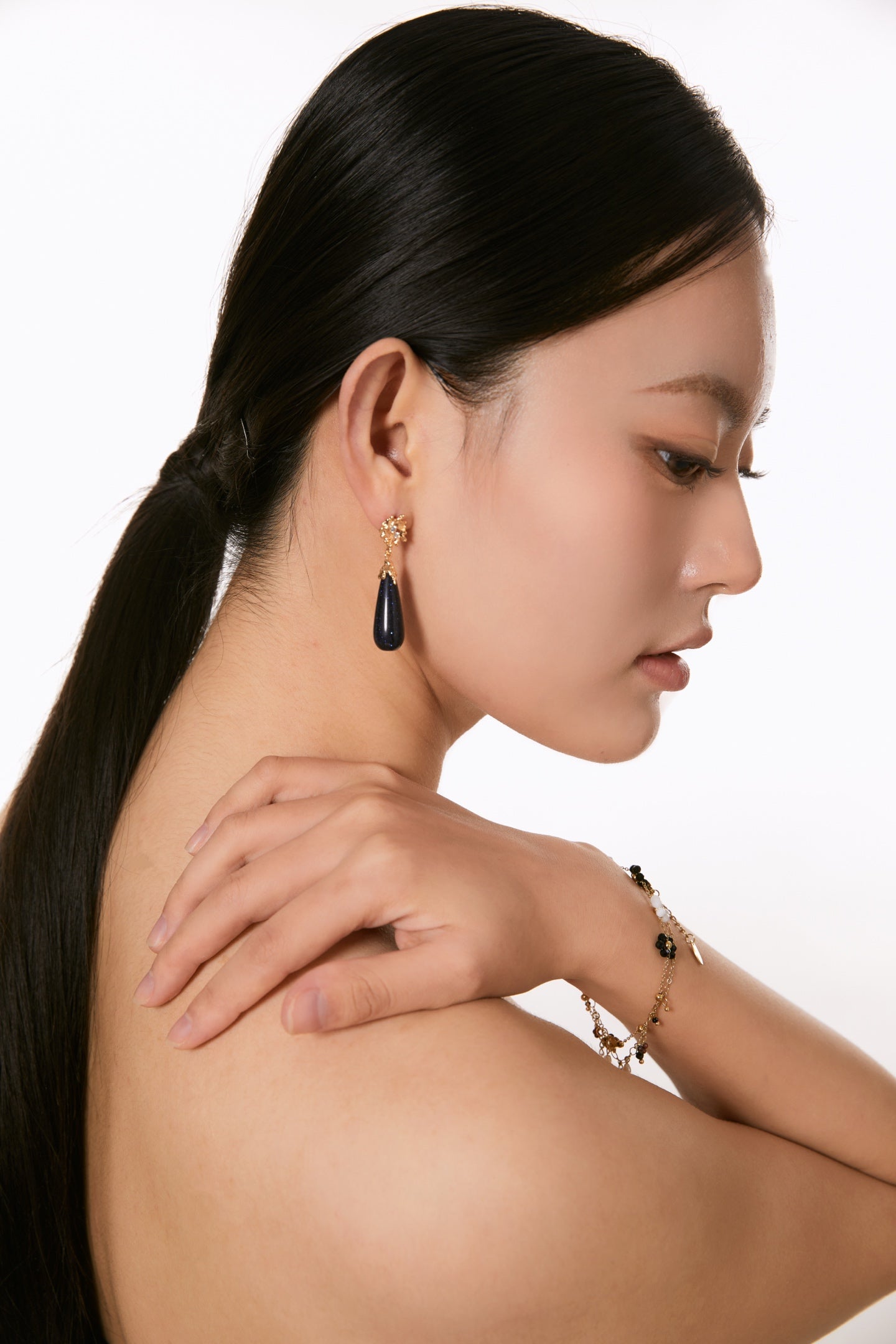 Niche Blue Sandstone Sterling Silver Earrings - Teardrop Gold-Tone Zircon Design, Vintage Statement Jewelry for Women