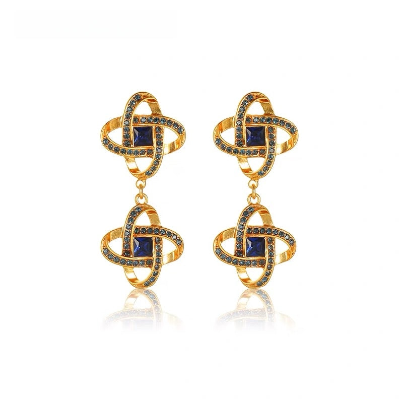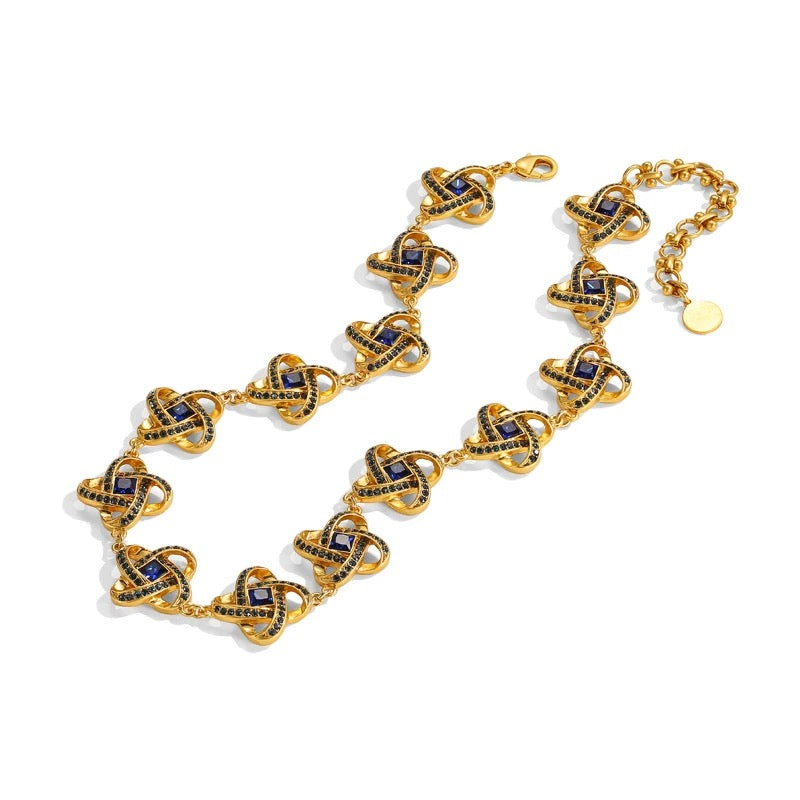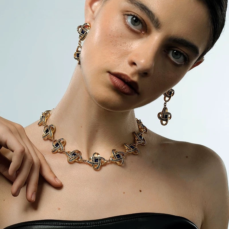 Niche Celtic Knot Gold-Tone Jewelry Set with Blue Crystals - Retro Elegant Design, Statement Jewelry for Women