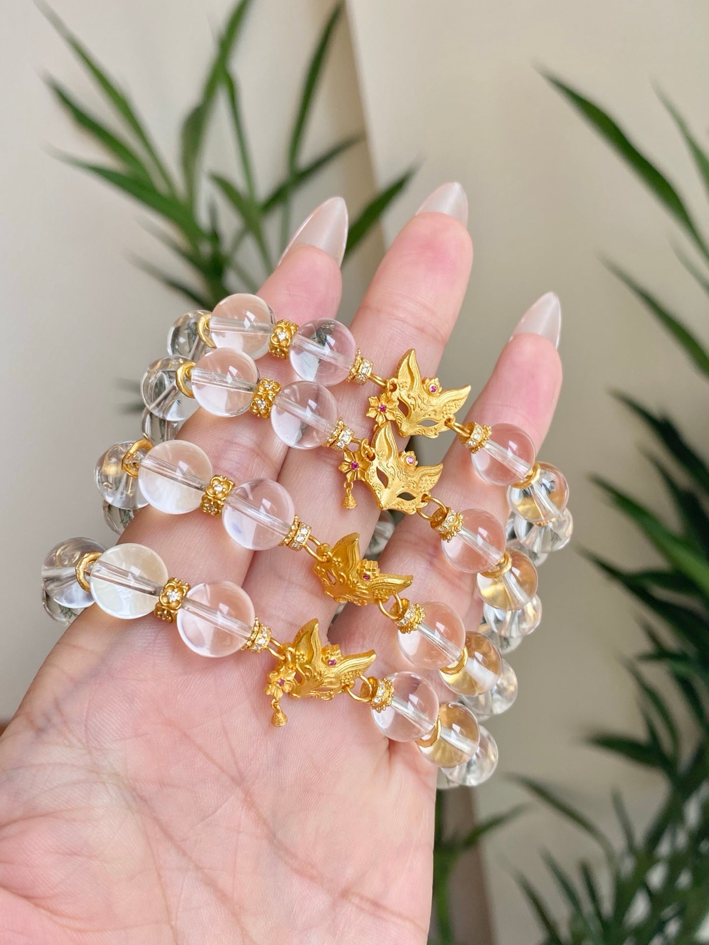 Niche Clear Quartz Sterling Silver Bracelet - Fox Gold-Tone Chinese Design, Lucky Statement Jewelry for Women