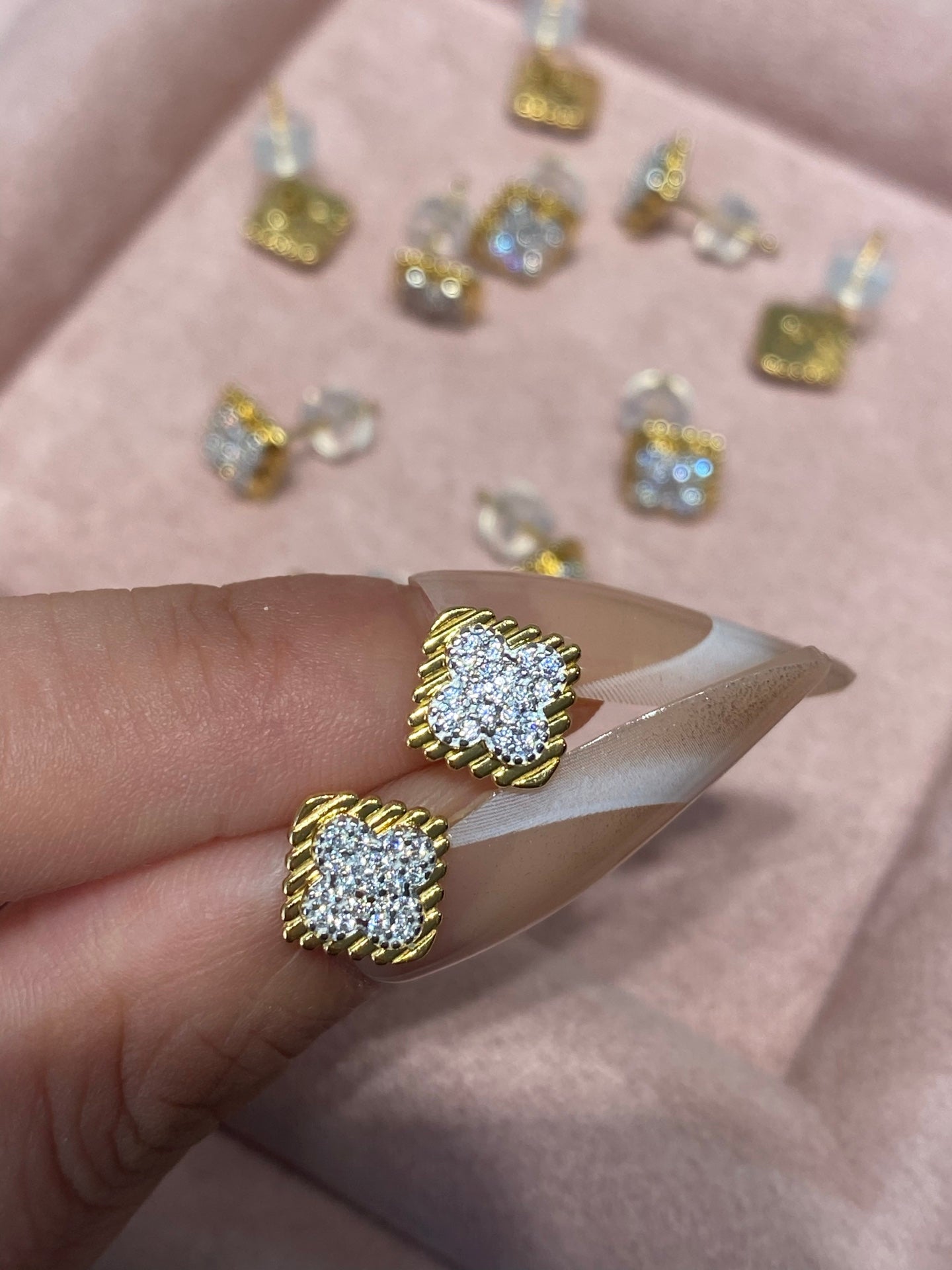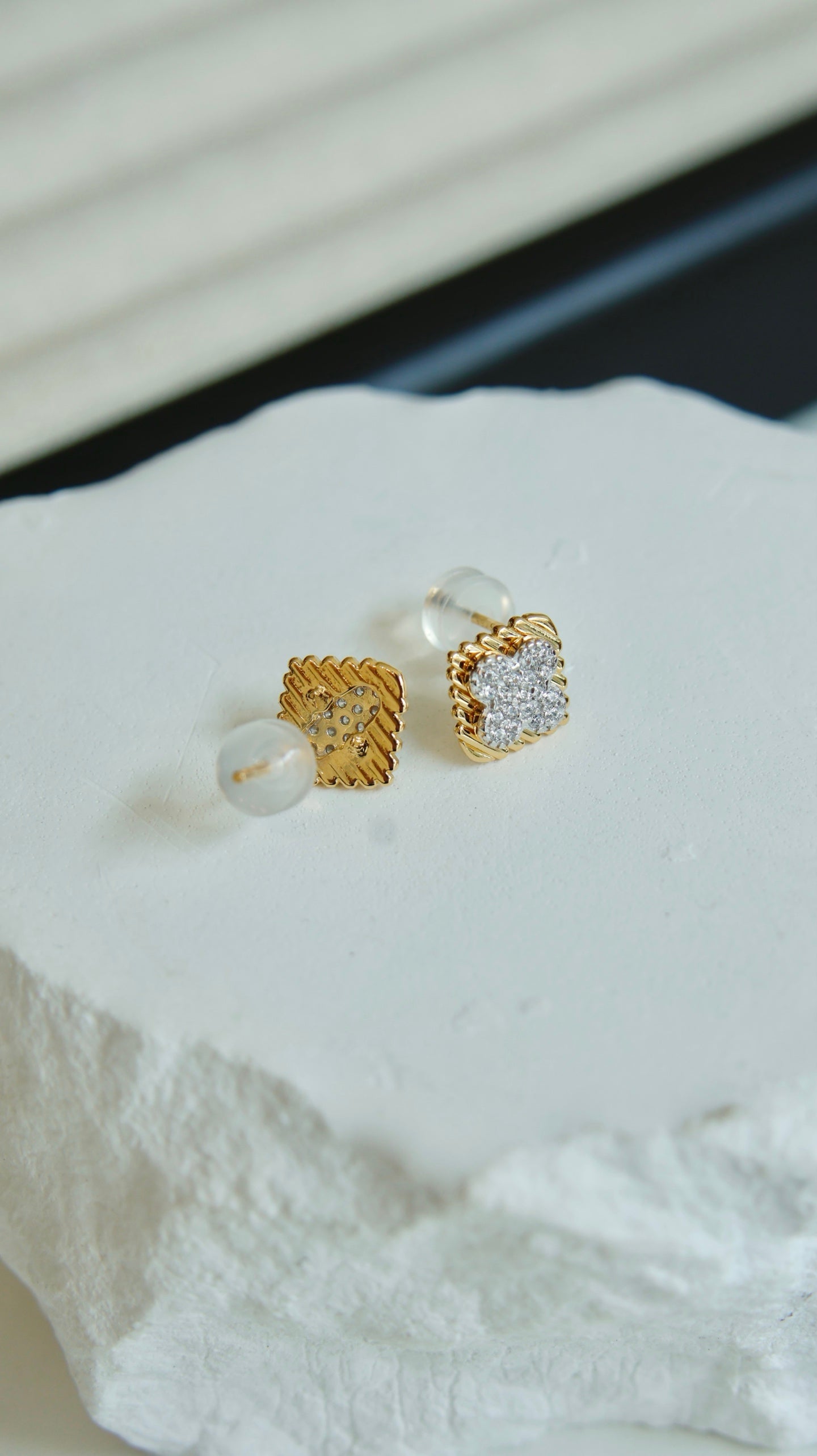 Niche Clover Sterling Silver Earrings - Zircon-Accented Gold-Tone Design, Minimalist Statement Jewelry for Women