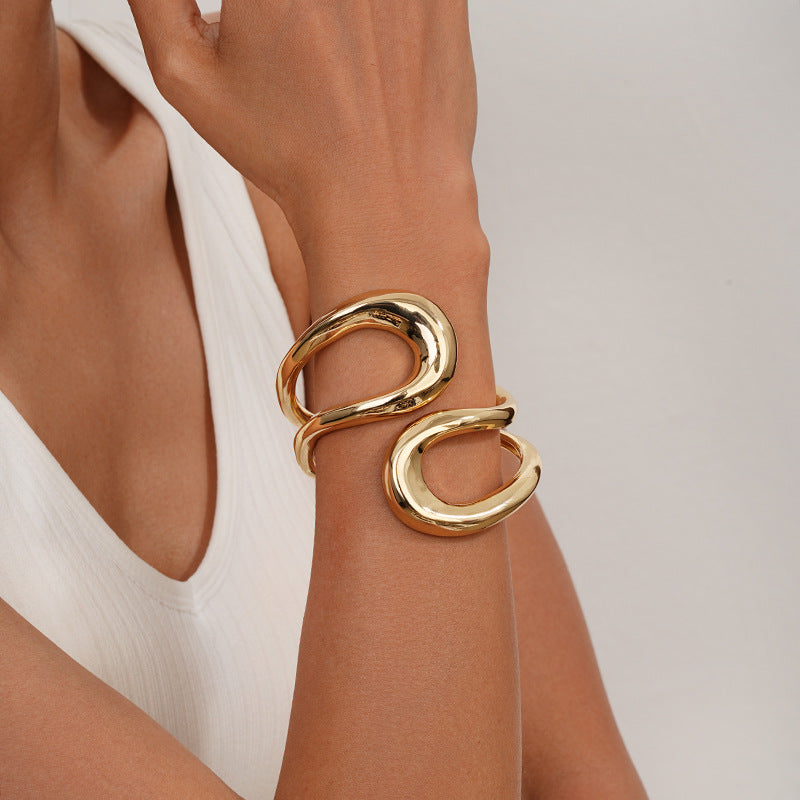 Niche Design Exaggerated Irregular Geometric Double - Layer Wide - Face Bracelet, Hollow - Out Embracing Wristband for Women