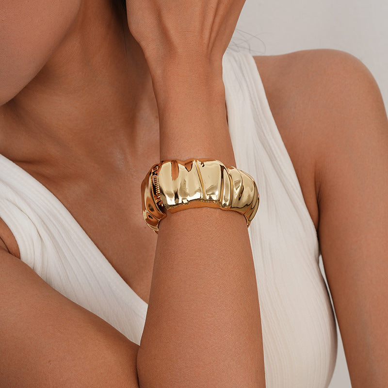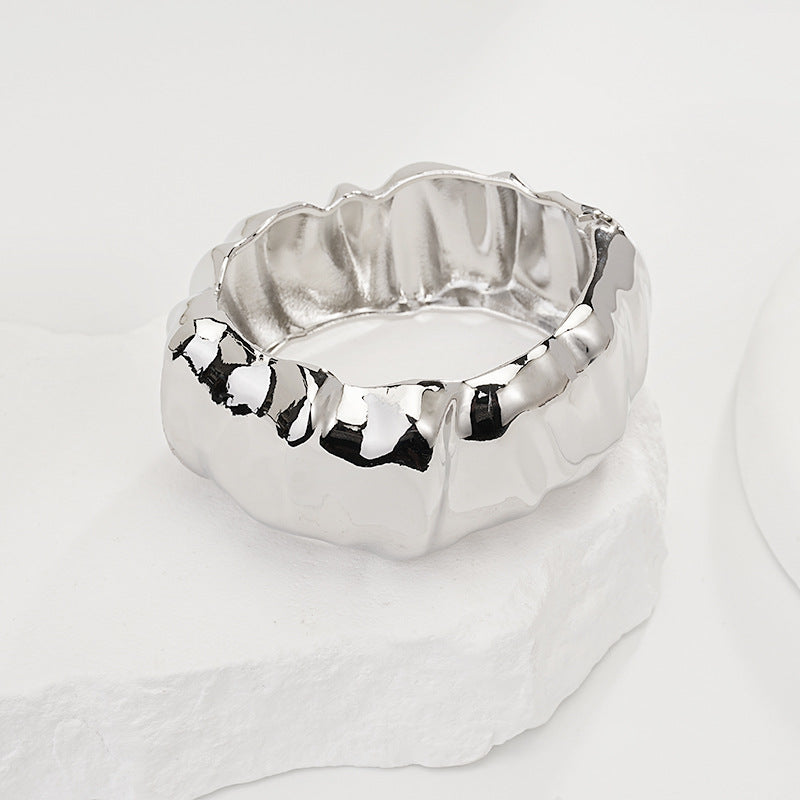 Niche Design Fashion Irregular Smooth Pleated Bracelet - Light Luxury Spring Clasp Wristband with High-End Aesthetic