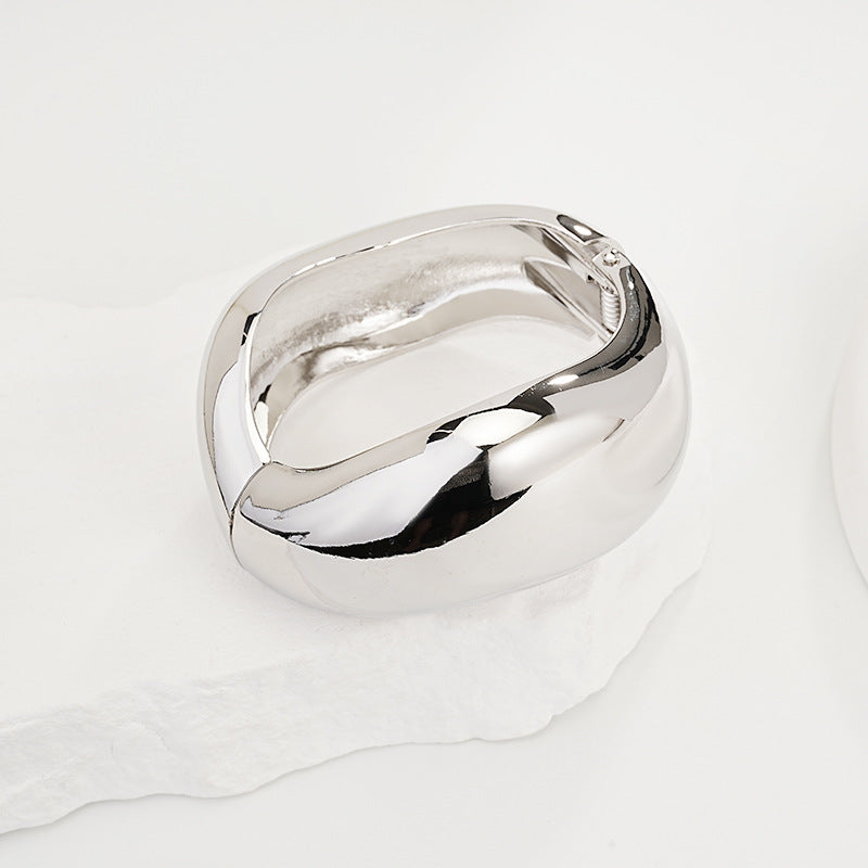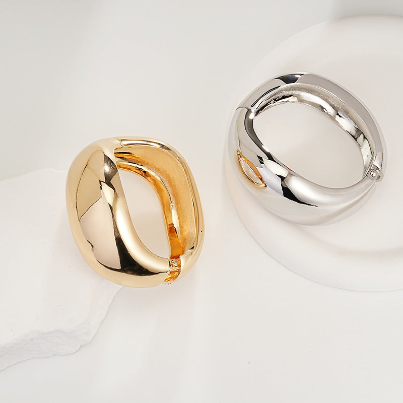 Niche Design Fashion Metal Geometric Oval Half-Moon Bracelet - Cold-Front Style Wristband for Women