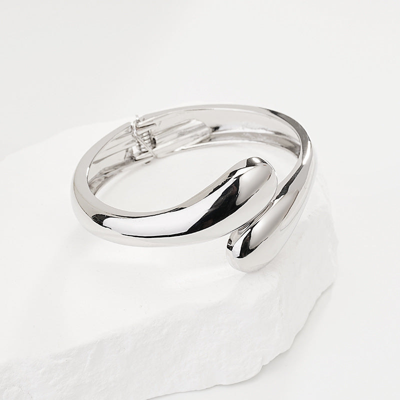Niche Design Metal Geometric Shiny Water Drop Encircling Bracelet - Retro Ins Minimalist, Light Luxury, High-End & Exquisite