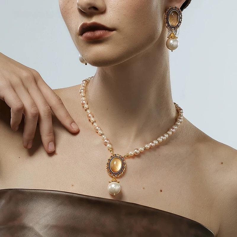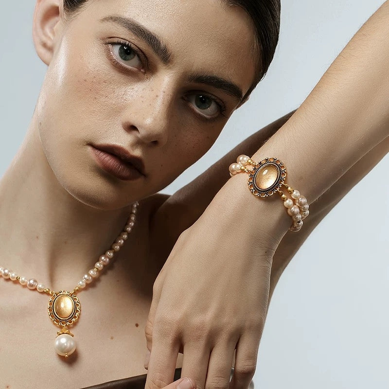Niche Gold-Tone Cameo Jewelry Set - Retro Elegant Design, Statement Jewelry for Women