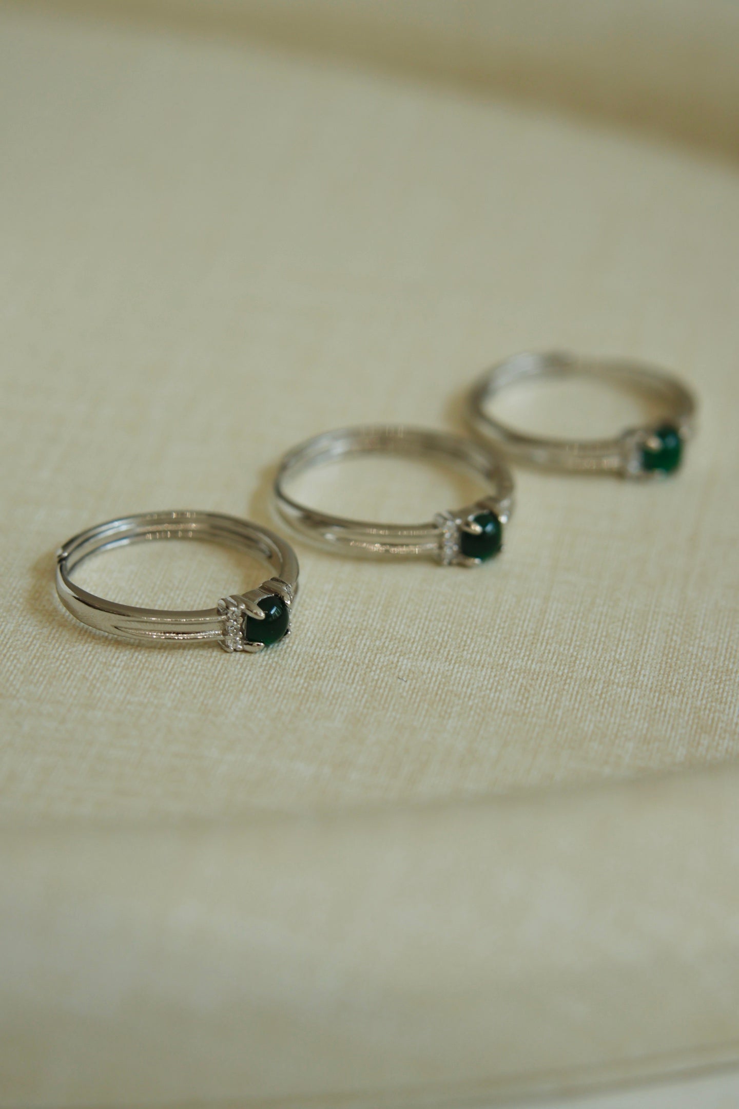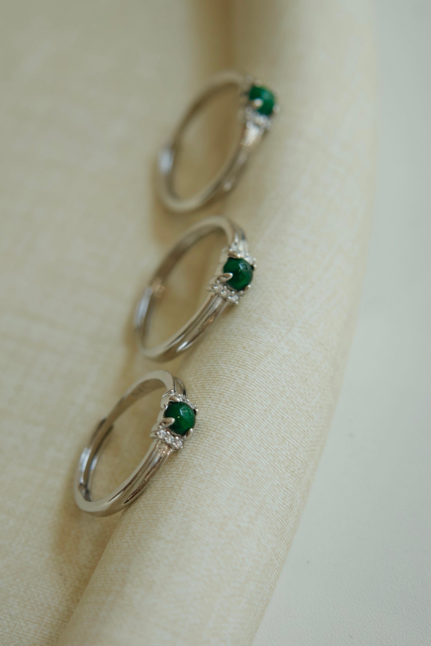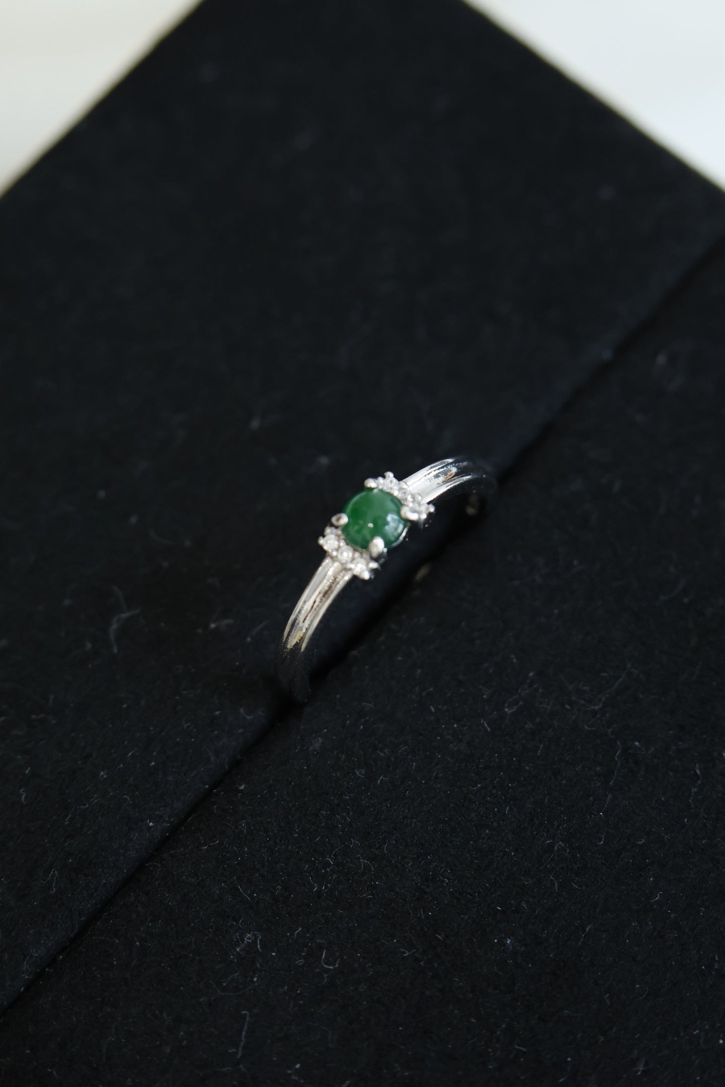 Niche Jade Sterling Silver Ring - Zircon-Accented Halo Chinese Design, Lucky Statement Jewelry for Women