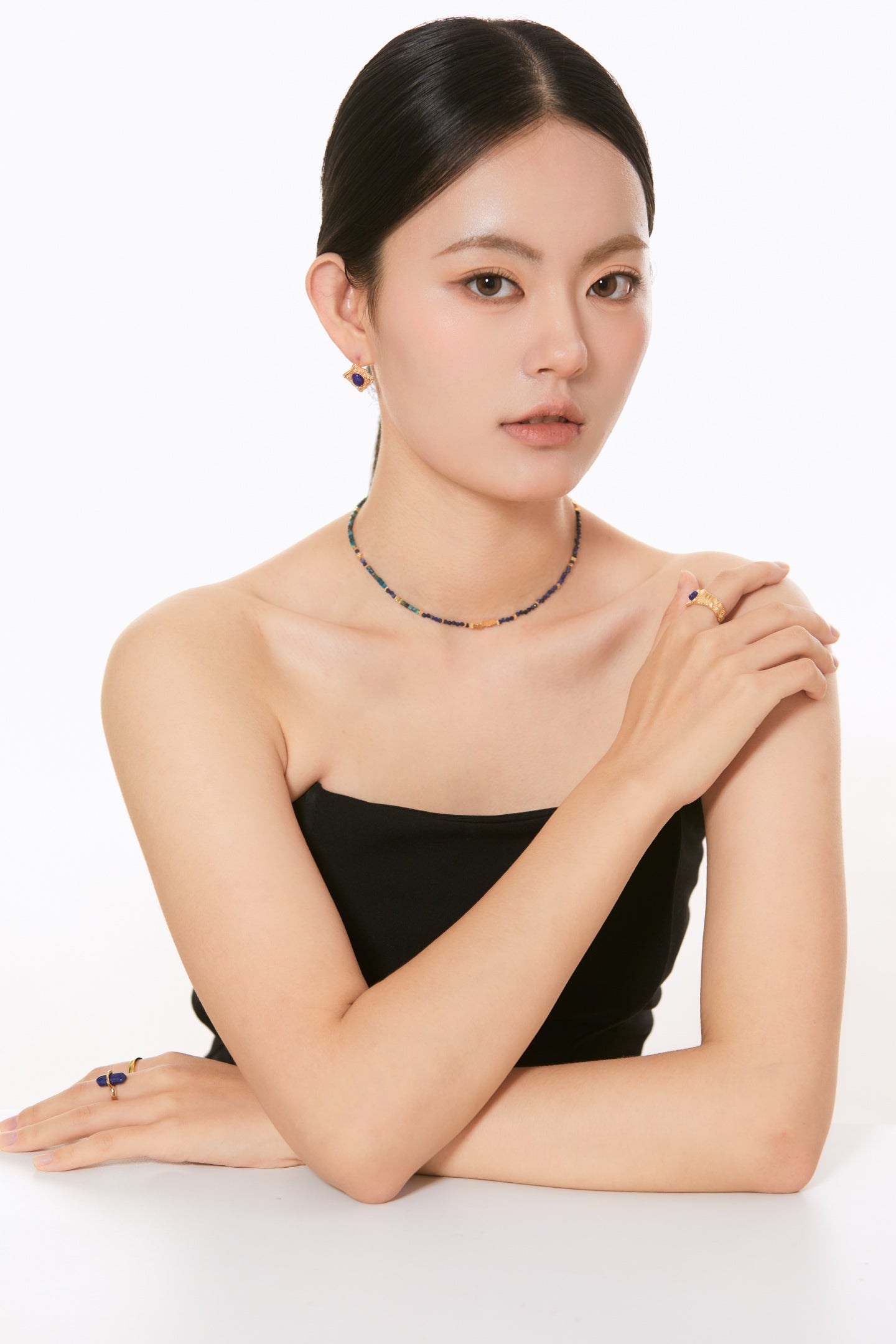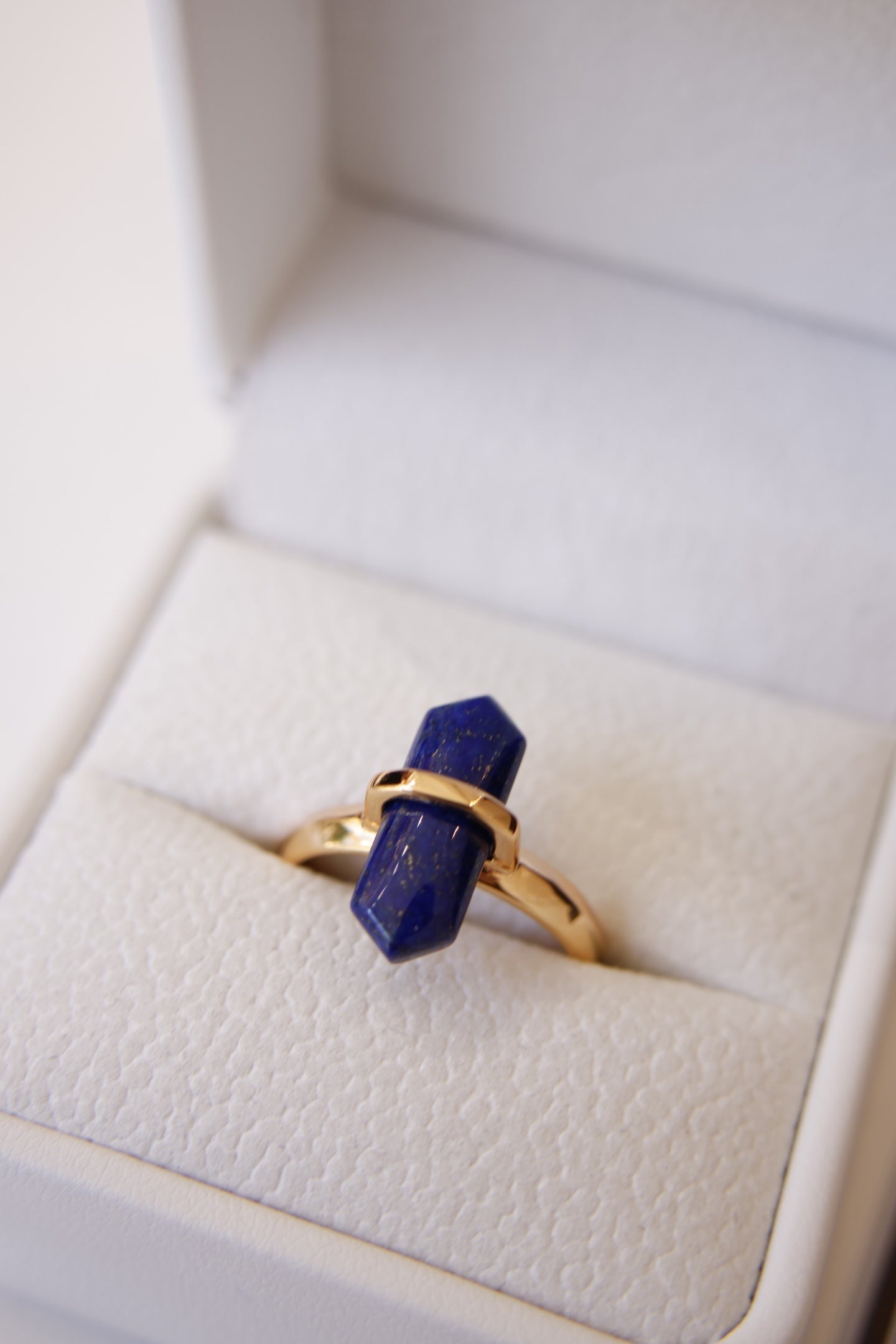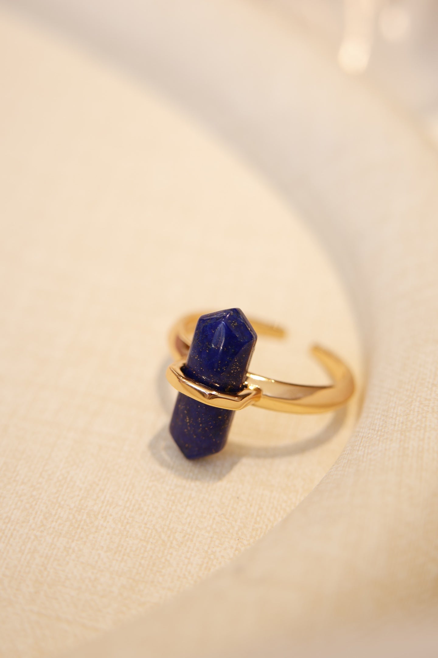 Niche Lapis Lazuli Sterling Silver Ring - Hexagon Gold-Tone Boho-Chic Design, Statement Jewelry for Women