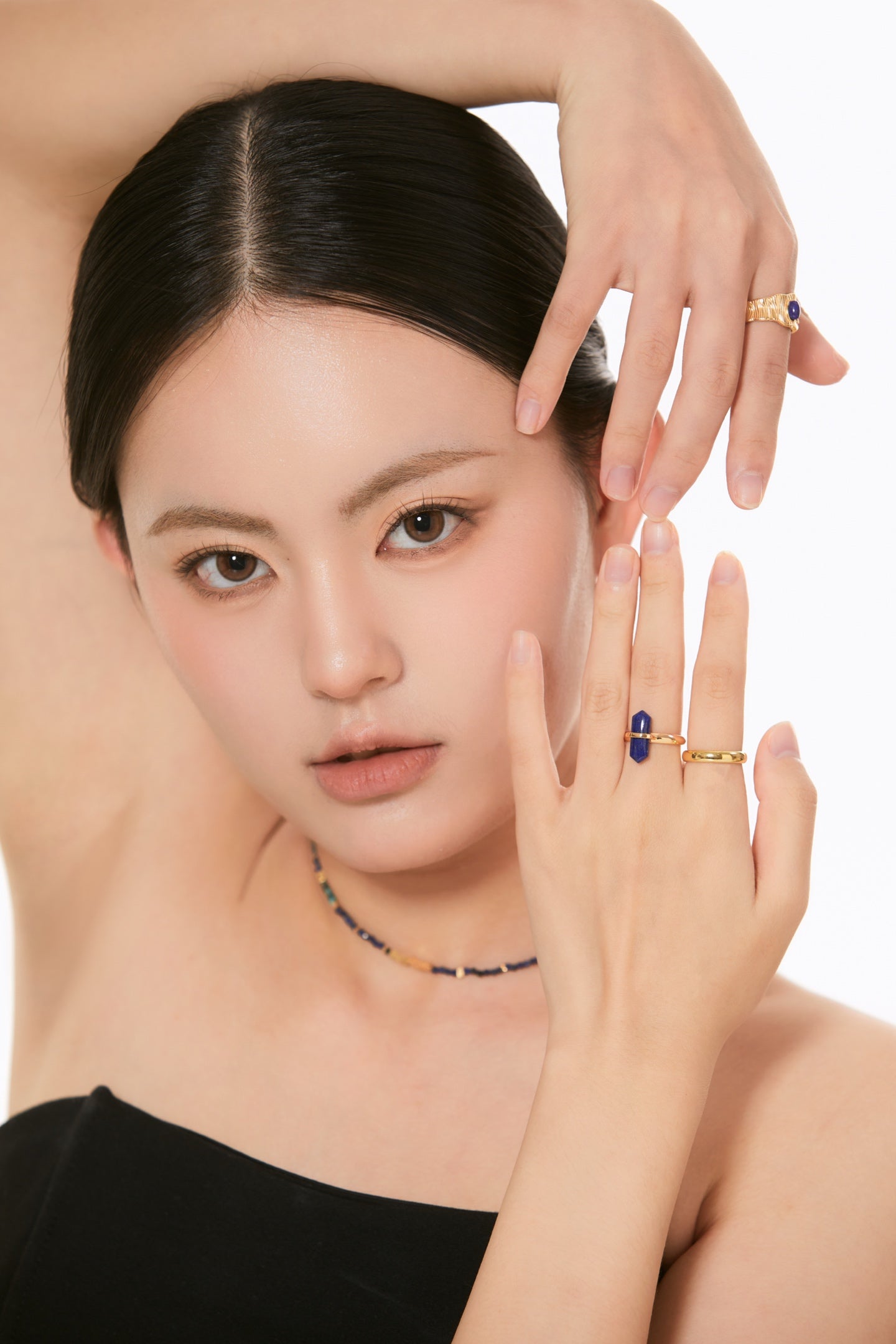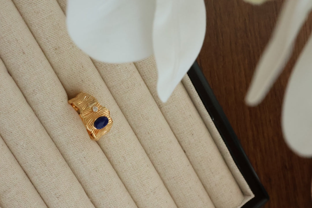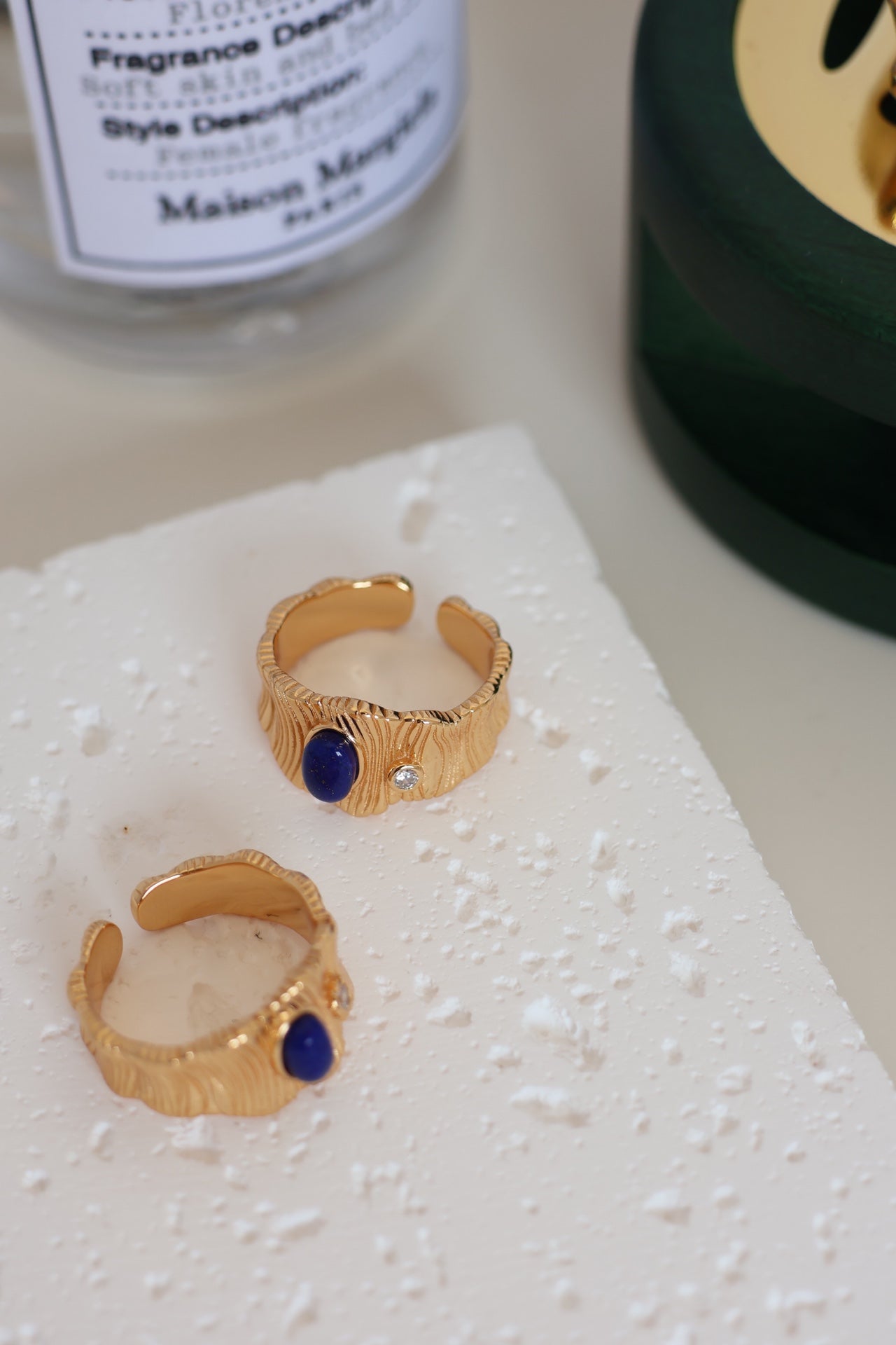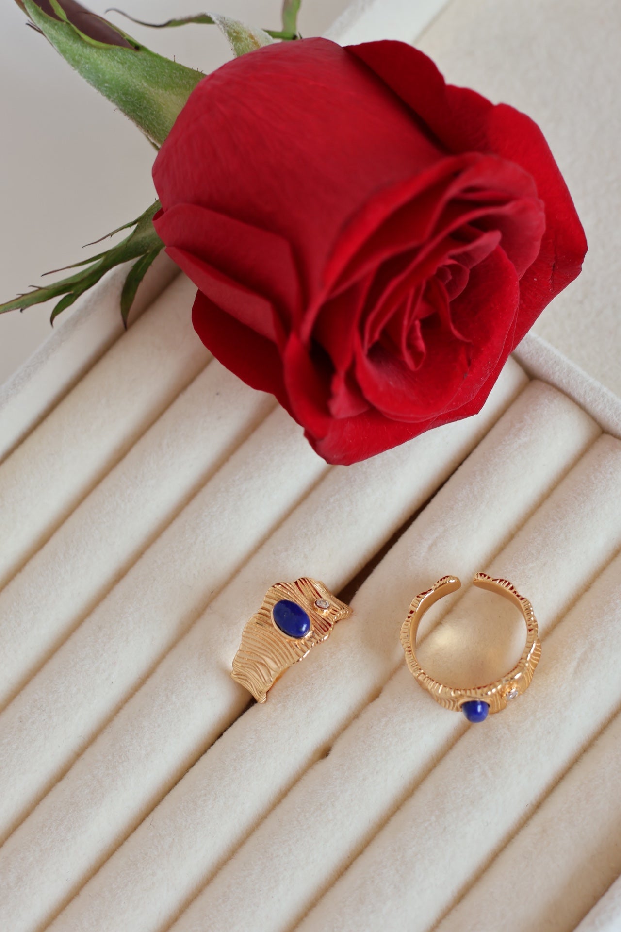 Niche Lapis Lazuli Sterling Silver Ring Set - Textured Gold-Tone Boho-Chic Design, Statement Jewelry for Women
