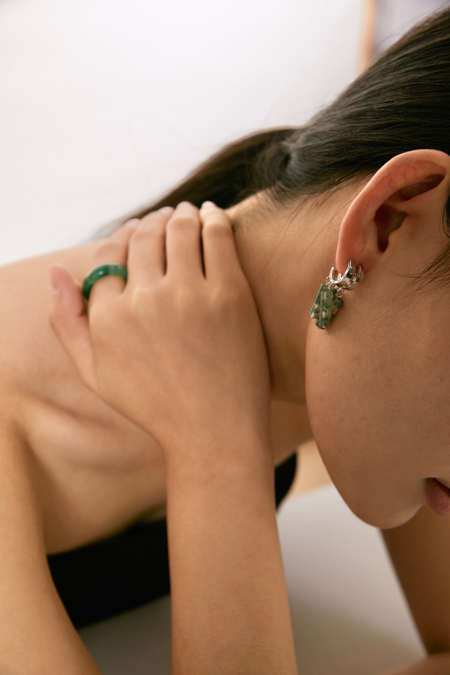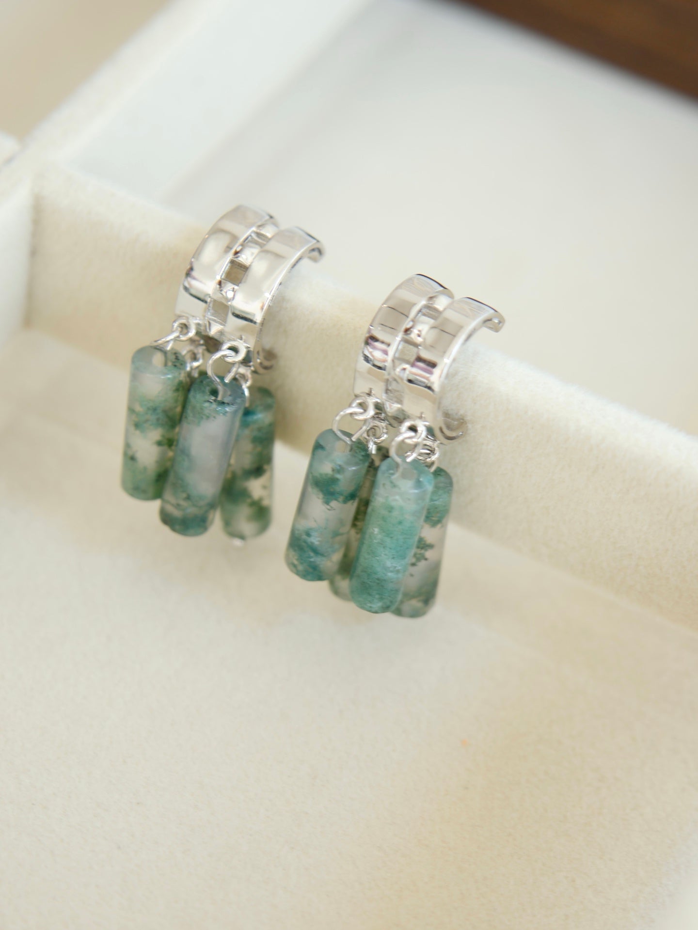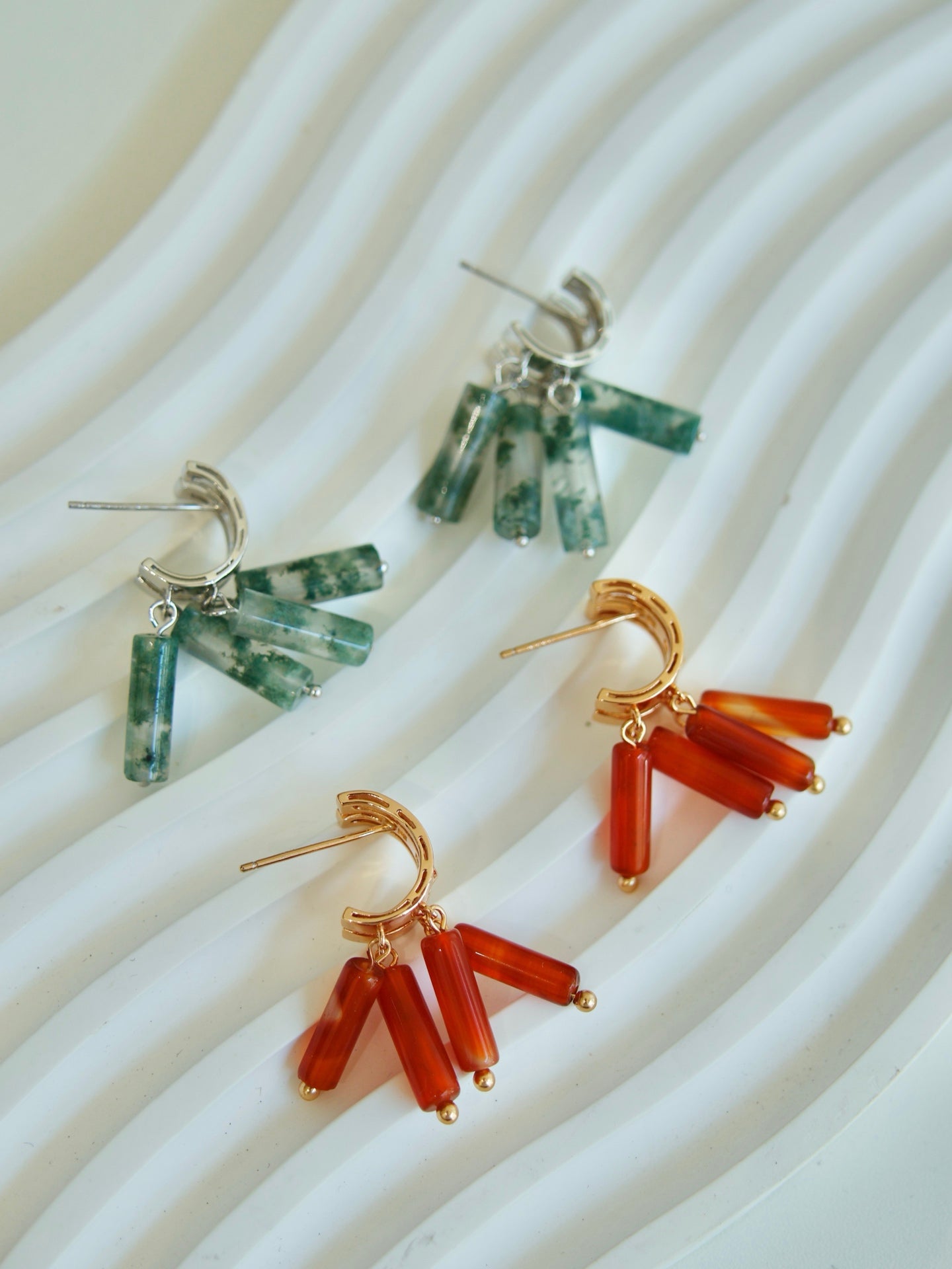 Niche Moss Agate Carnelian Sterling Silver Earrings - Two-Tone Tassel C-Hoop Design, Boho Statement Jewelry for Women