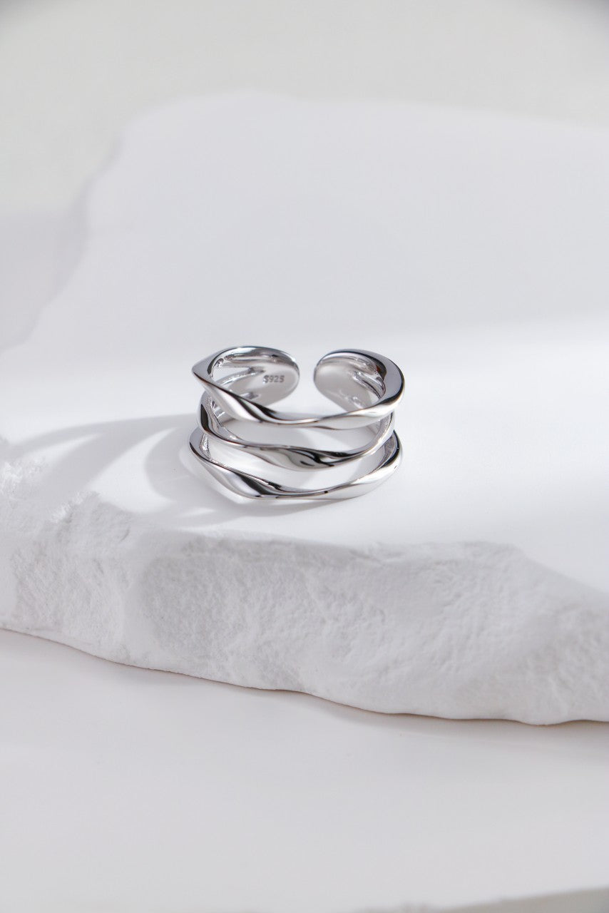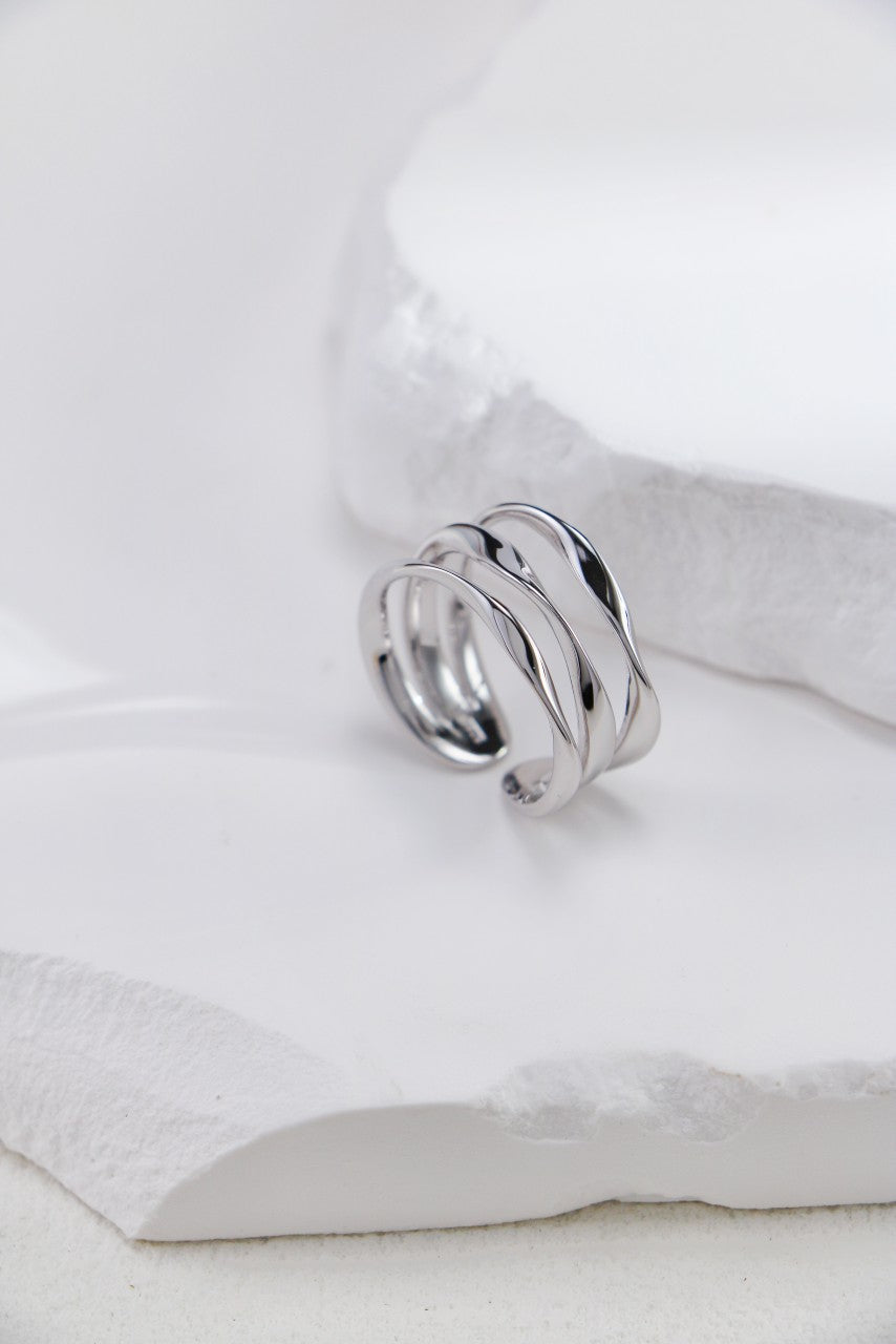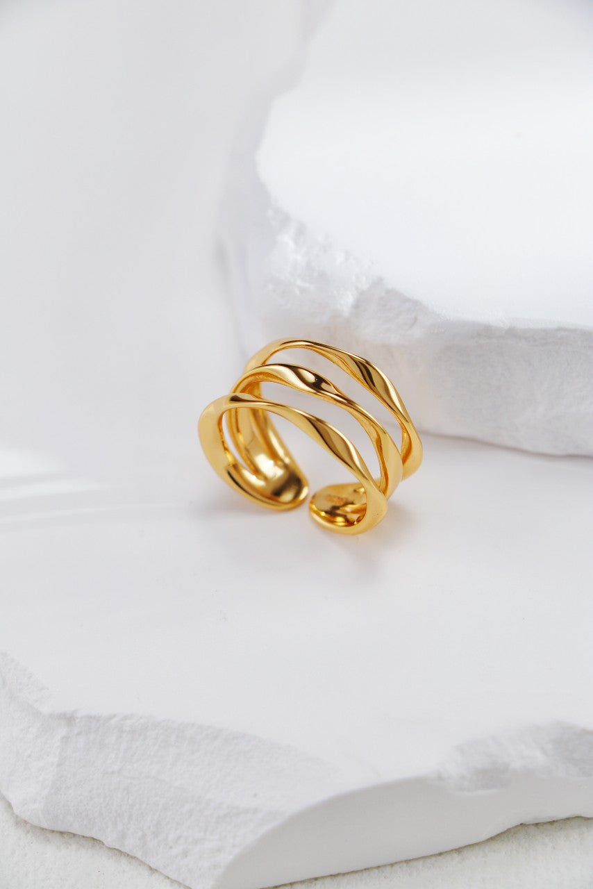 Niche Multi-Layer Twisted Sterling Silver Ring - Gold-Tone Minimalist Edgy Design, Statement Jewelry for Women