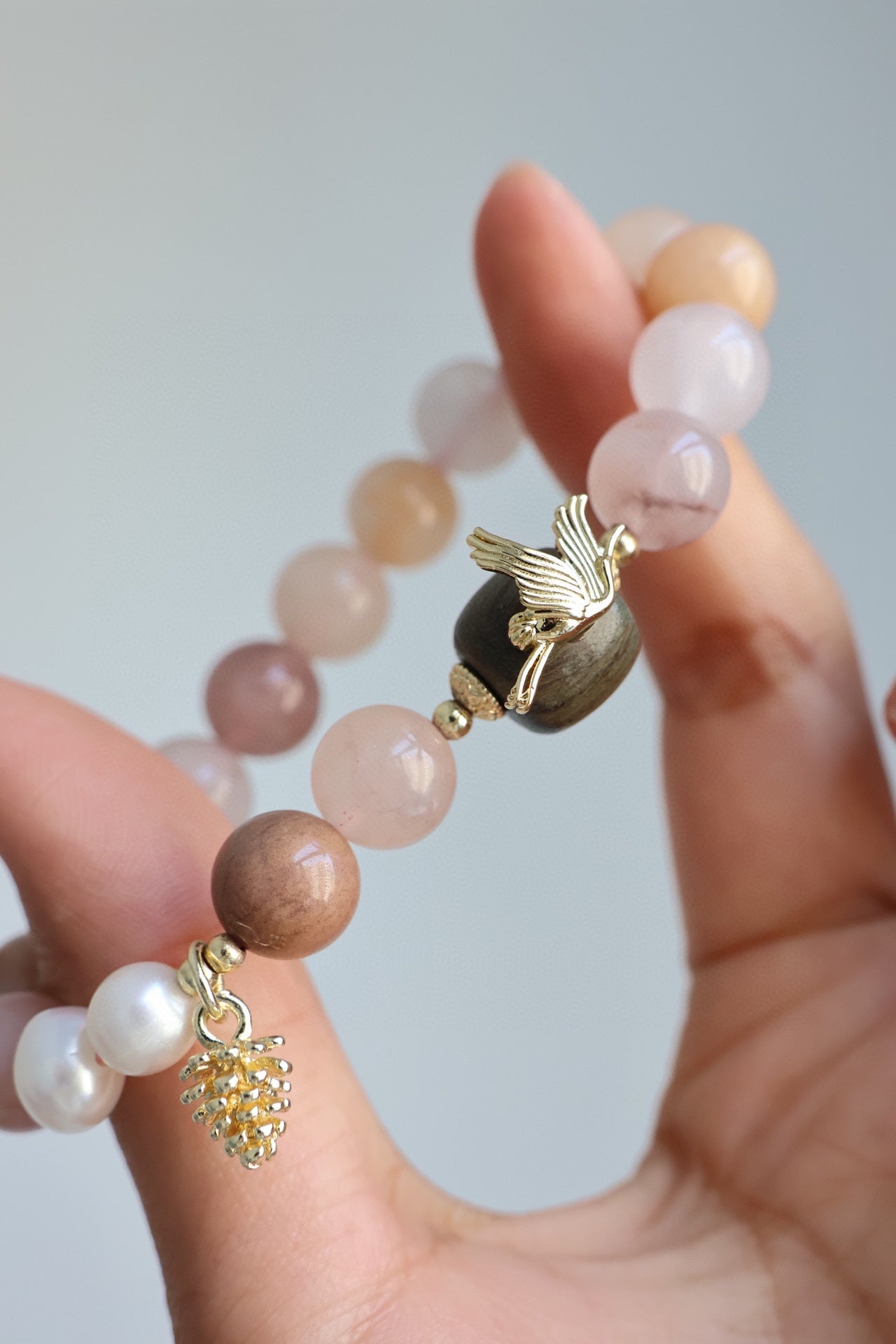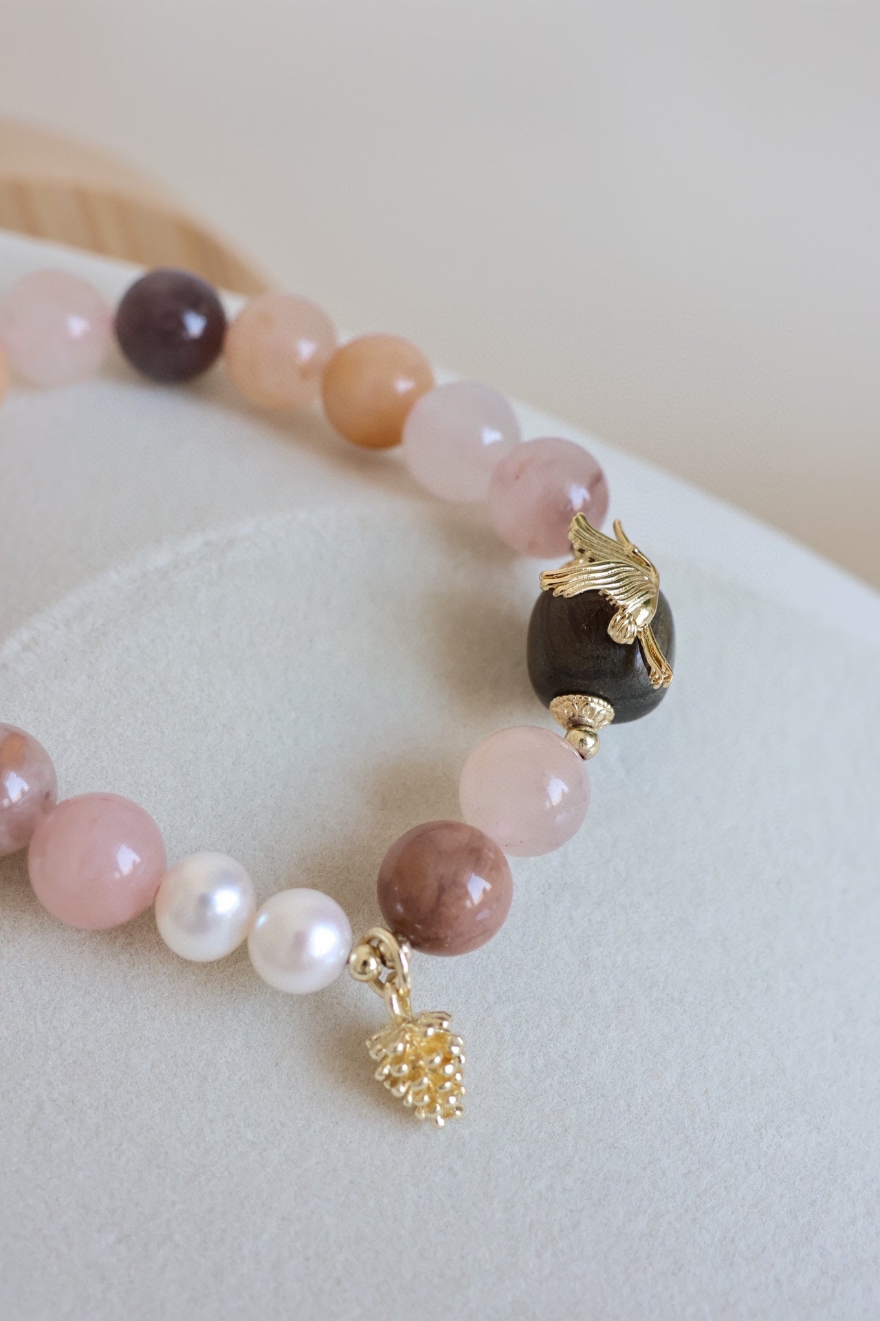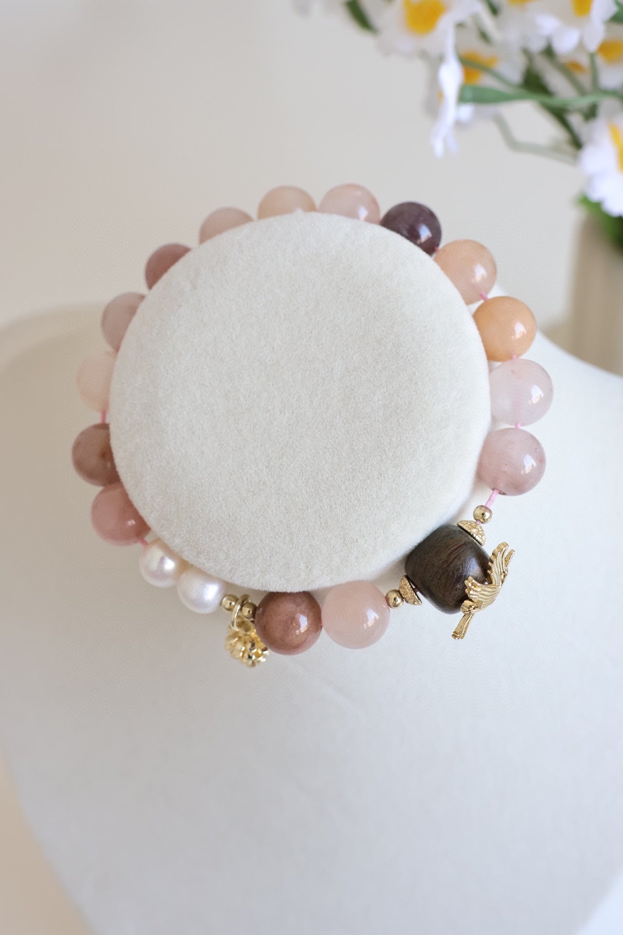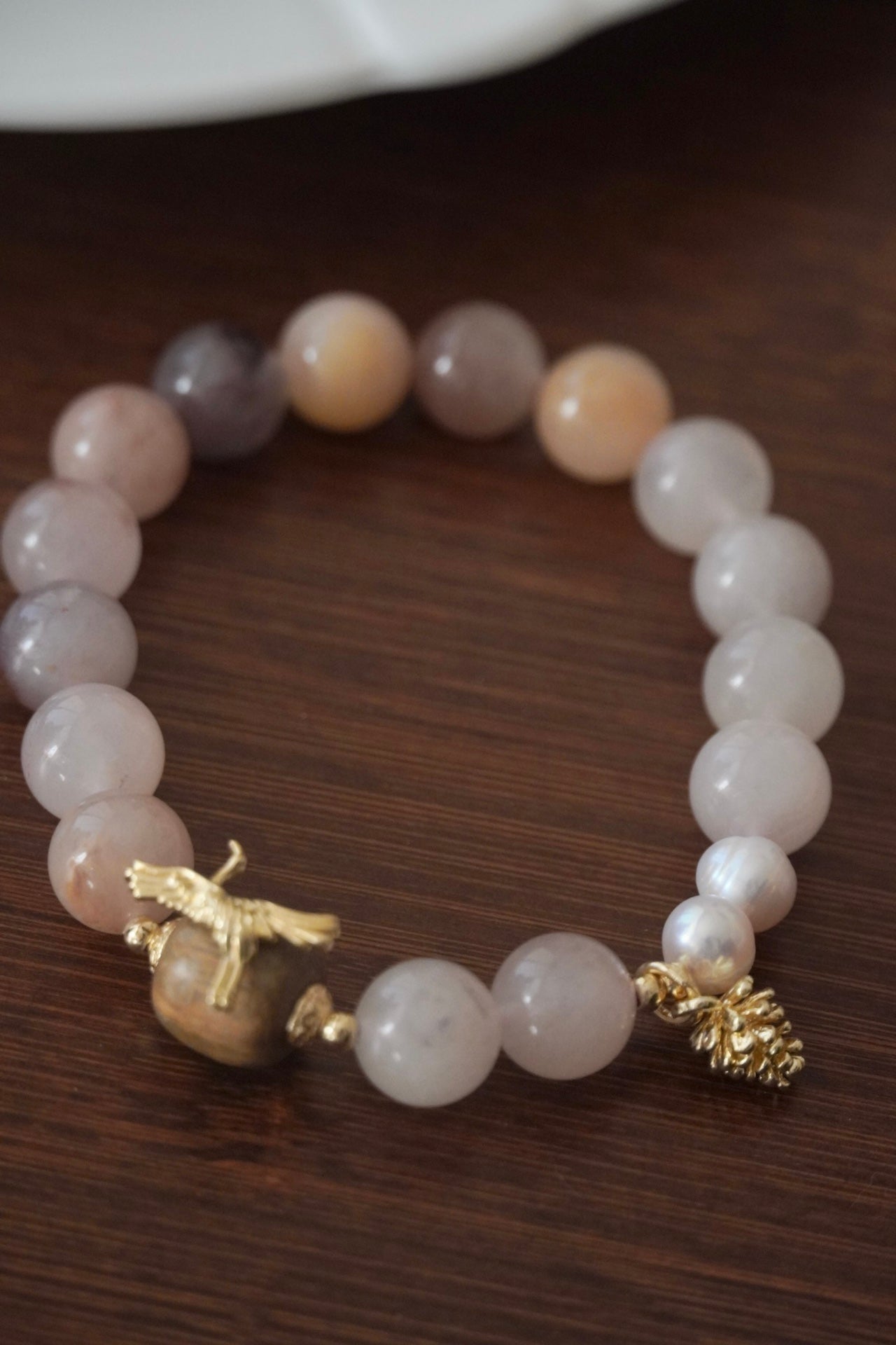 Niche Multi-Moonstone Charm Sterling Silver Bracelet - Gold-Tone Boho-Chic Elegant Design, Statement Jewelry for Women