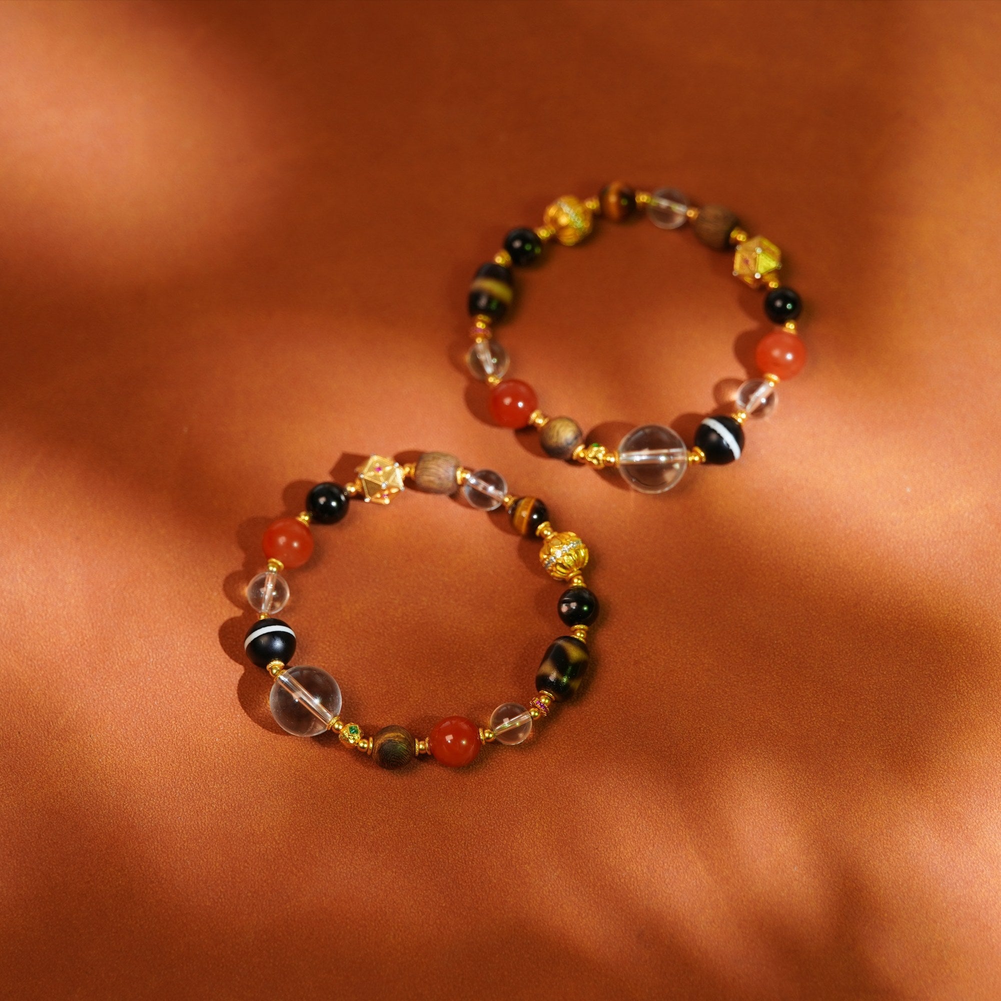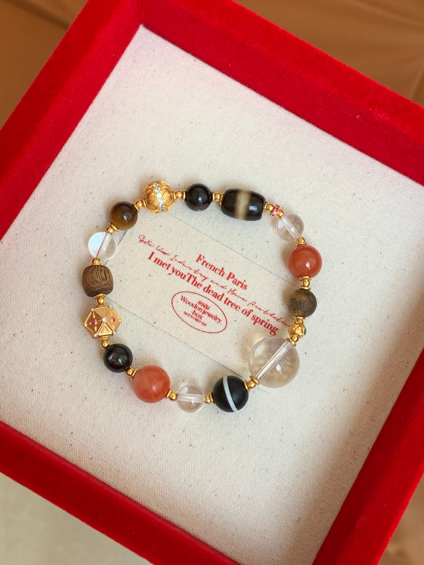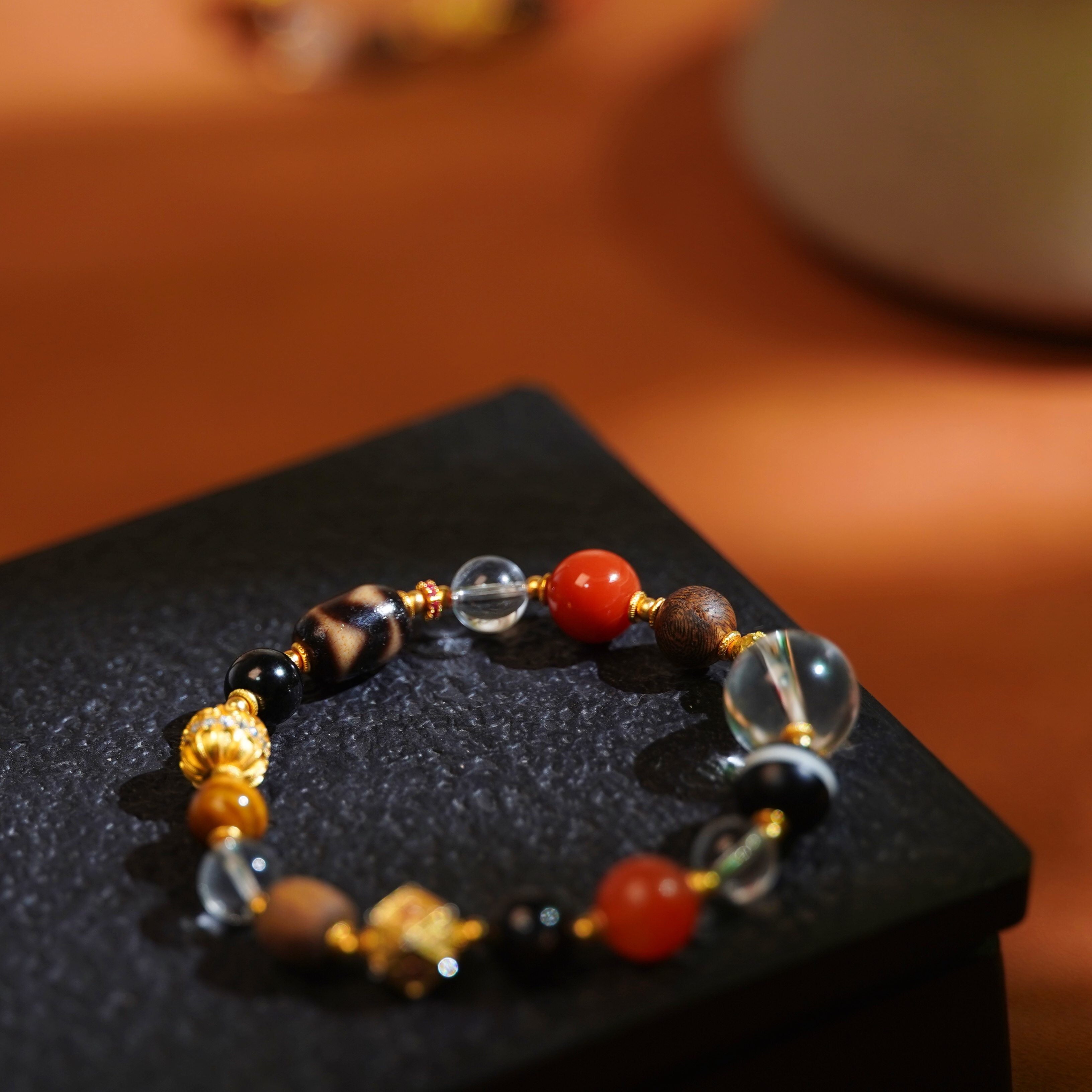 Niche Multi-Stone Cultural Charm Sterling Silver Bracelet - Gold-Tone Boho-Chic Design, Lucky Statement Jewelry for Women
