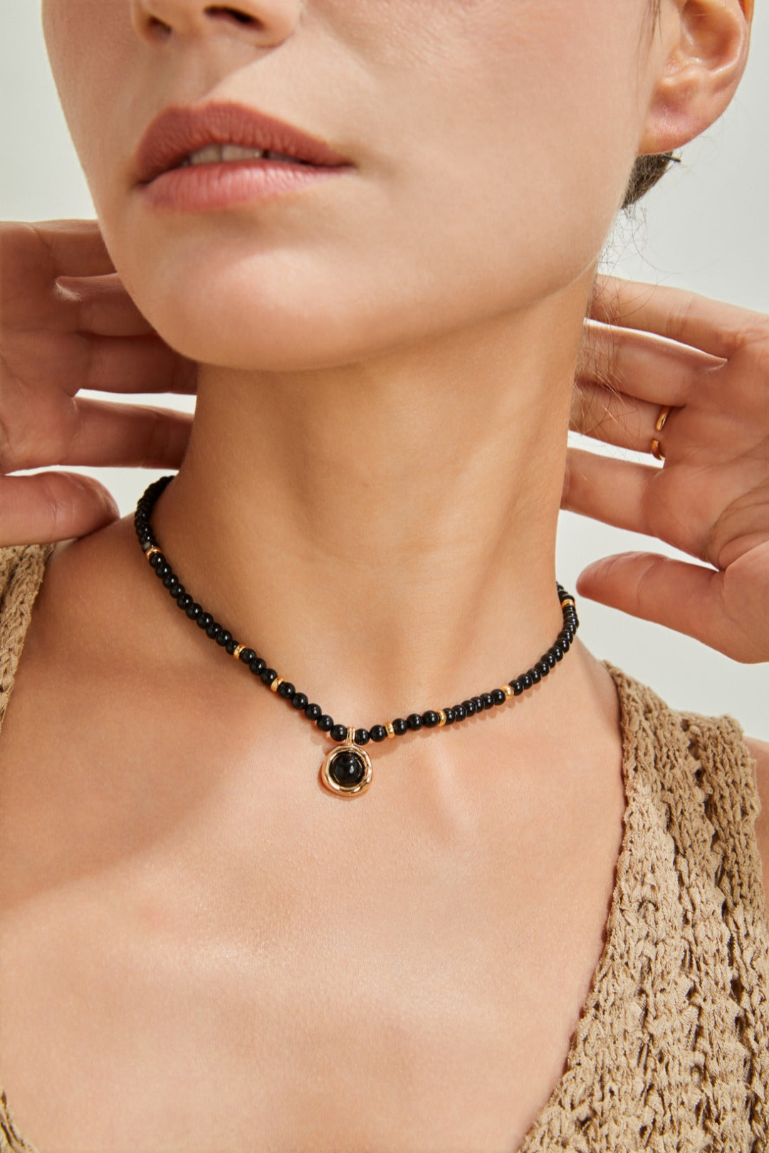 Niche Multi-Stone Sterling Silver Necklace - Beaded Boho-Chic Design, Versatile Statement Jewelry for Women