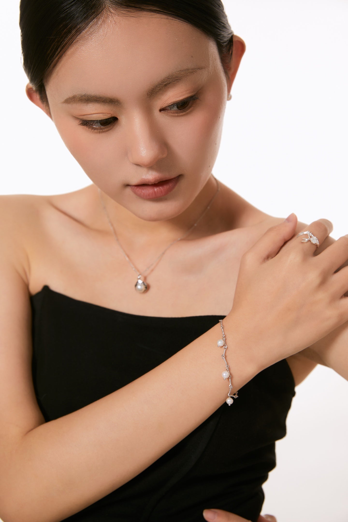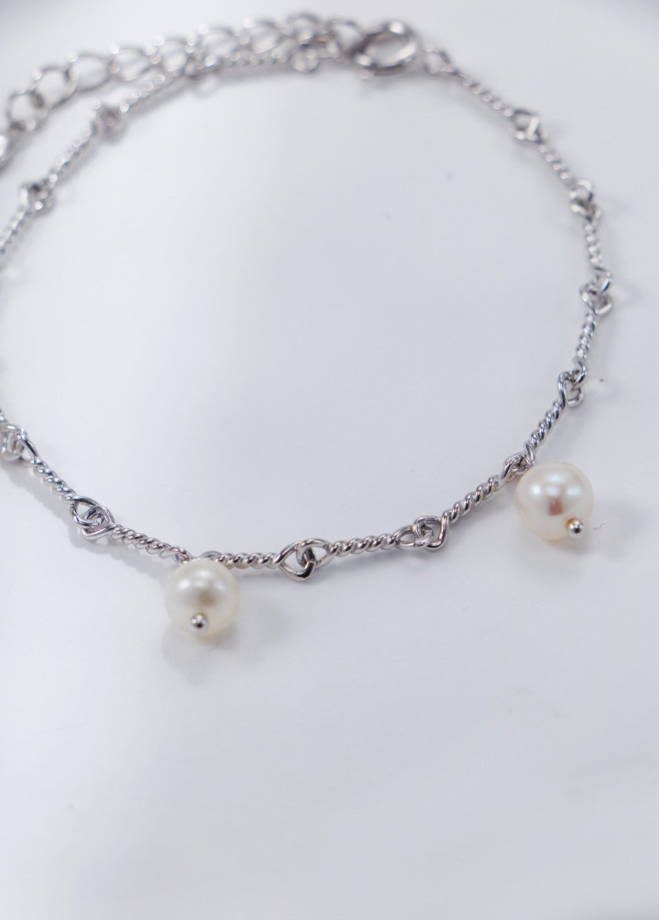 Niche Pearl Charm Sterling Silver Bracelet - Gold-Tone Elegant Design, Statement Jewelry for Women