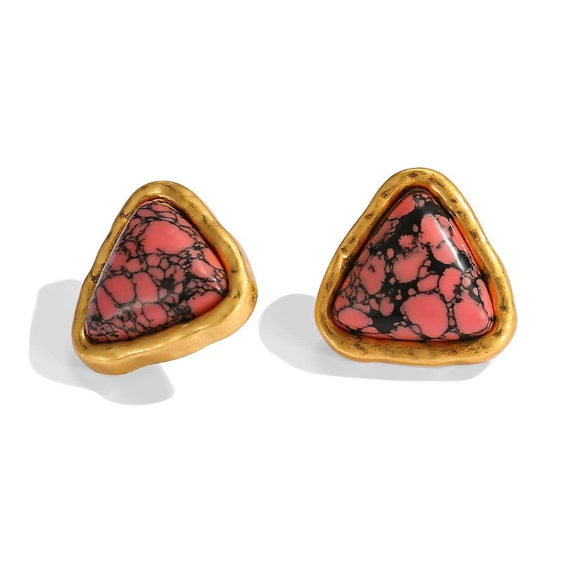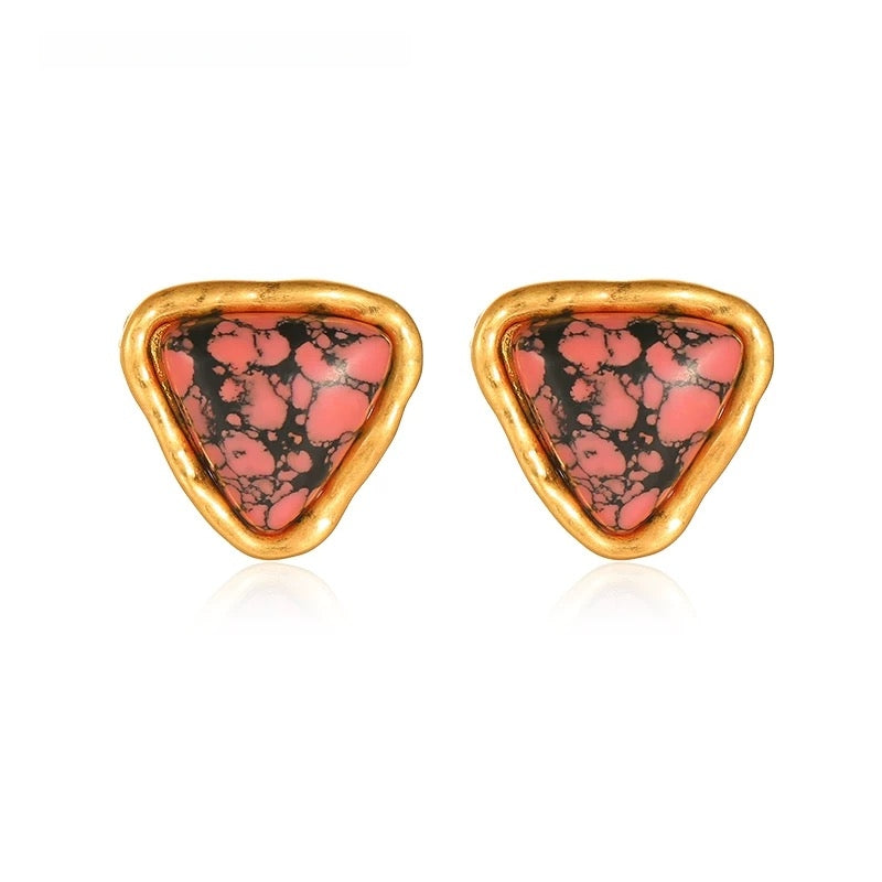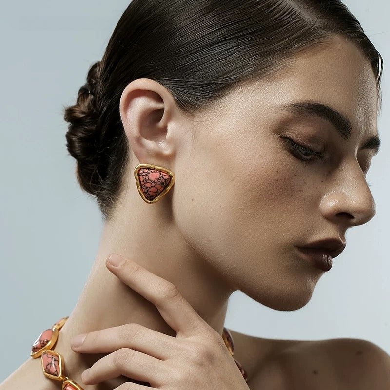 Niche Pink Turquoise Gold-Tone Jewelry Set - Retro Elegant Design, Statement Jewelry for Women