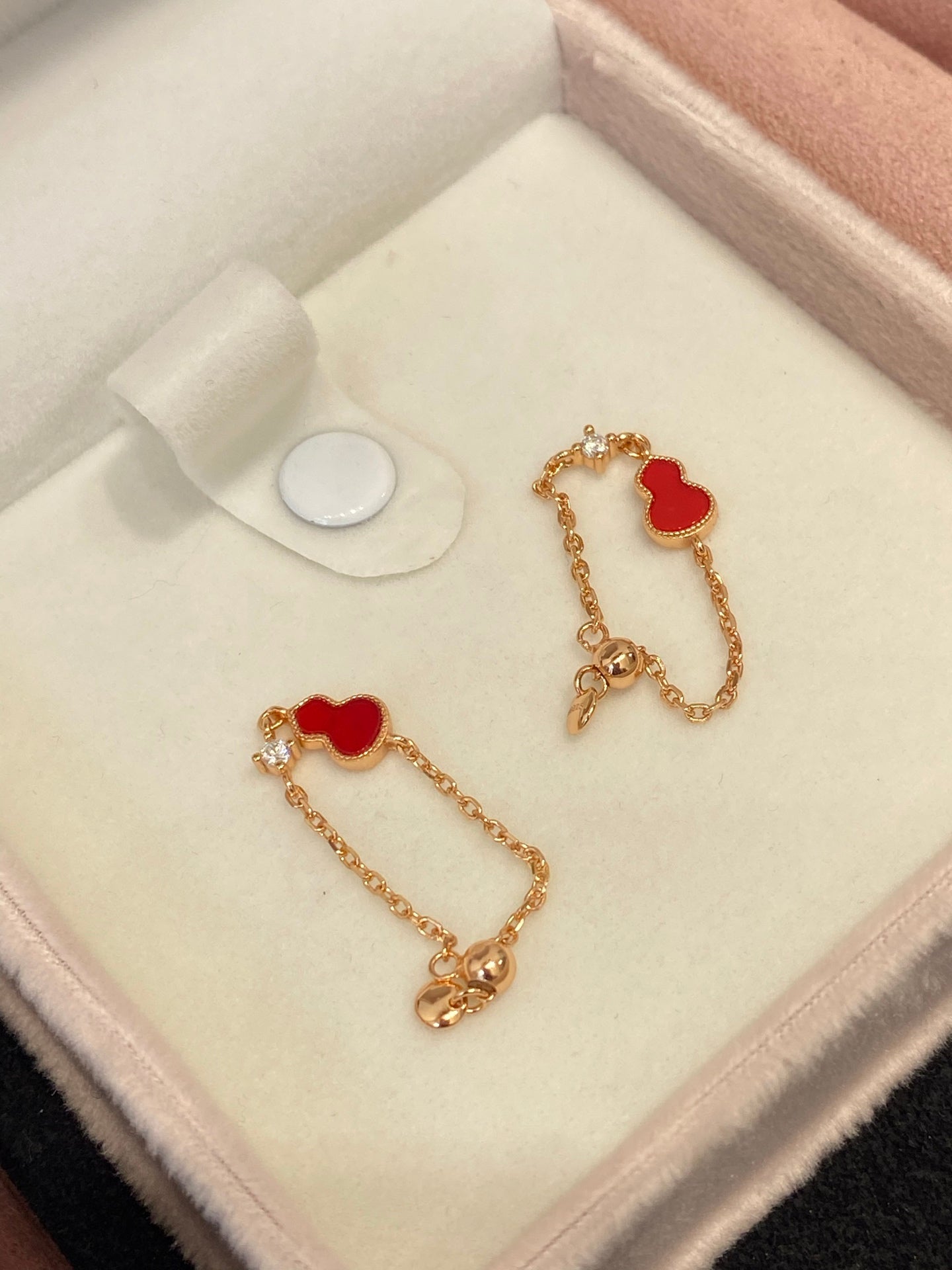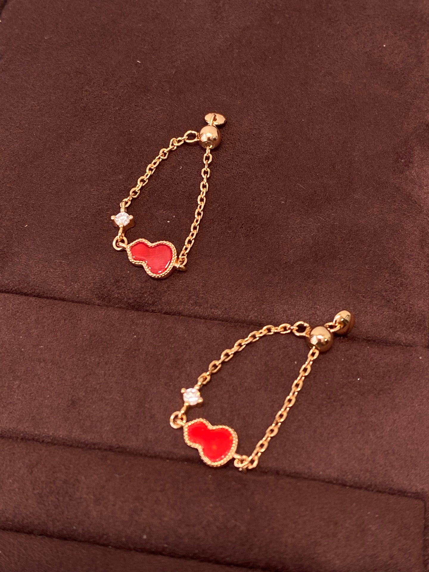 Niche Red Enamel Gourd Sterling Silver Earrings - Gold-Tone Chinese Design, Lucky Statement Jewelry for Women