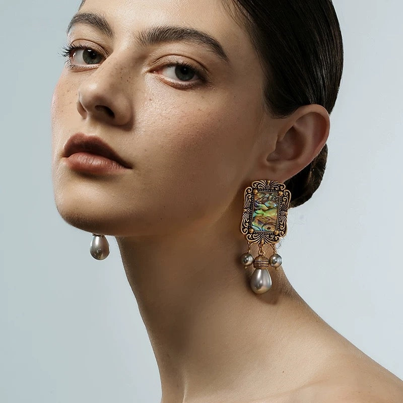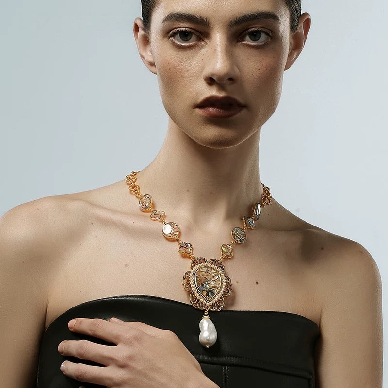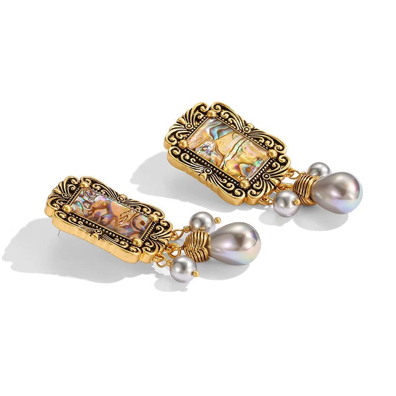 Niche Shell Pearl Gold-Tone Jewelry Set - Retro Elegant Design, Statement Jewelry for Women