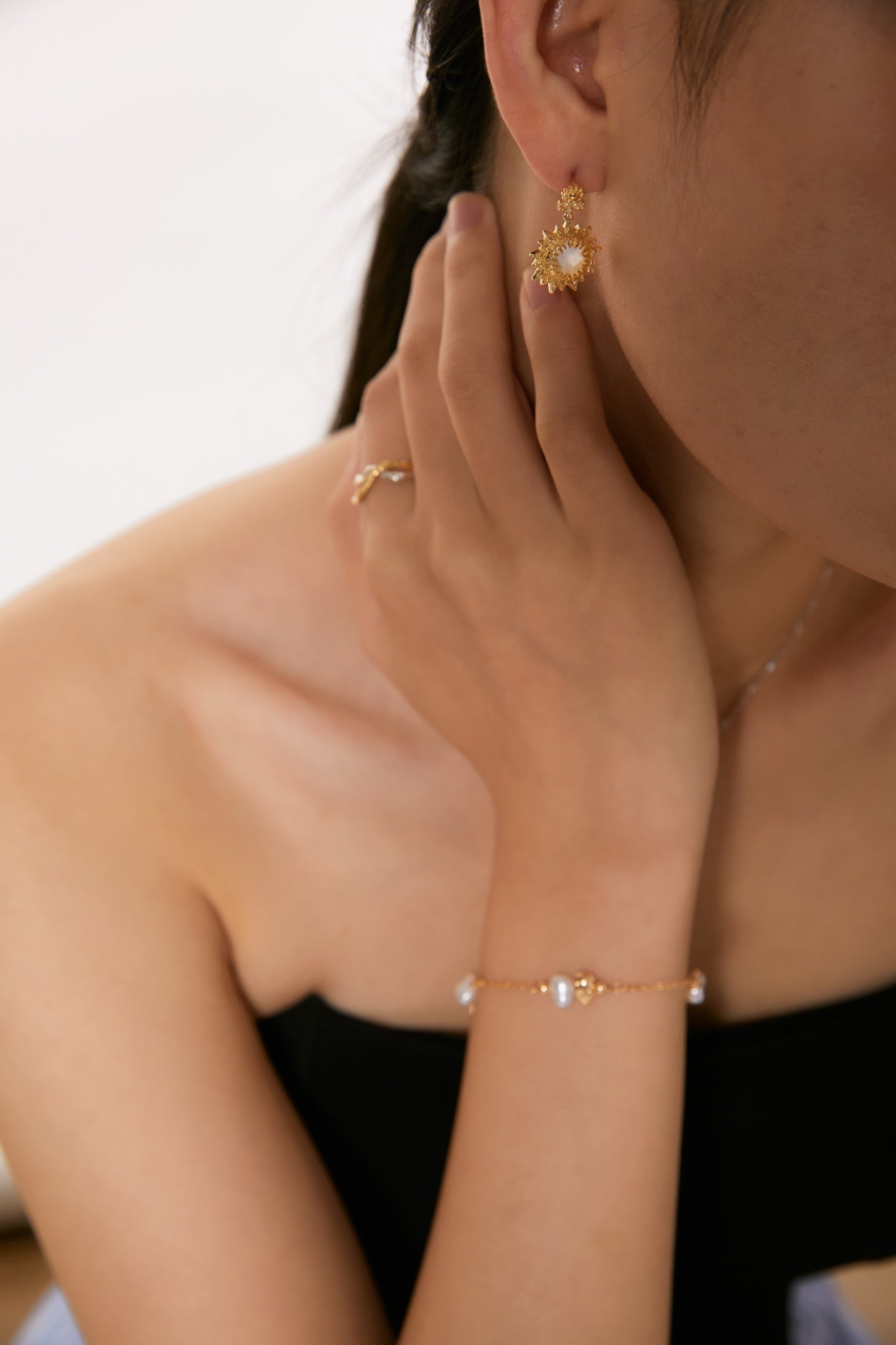 Niche Sunburst Shell Sterling Silver Earrings - Gold-Tone Vintage Design, Statement Jewelry for Women