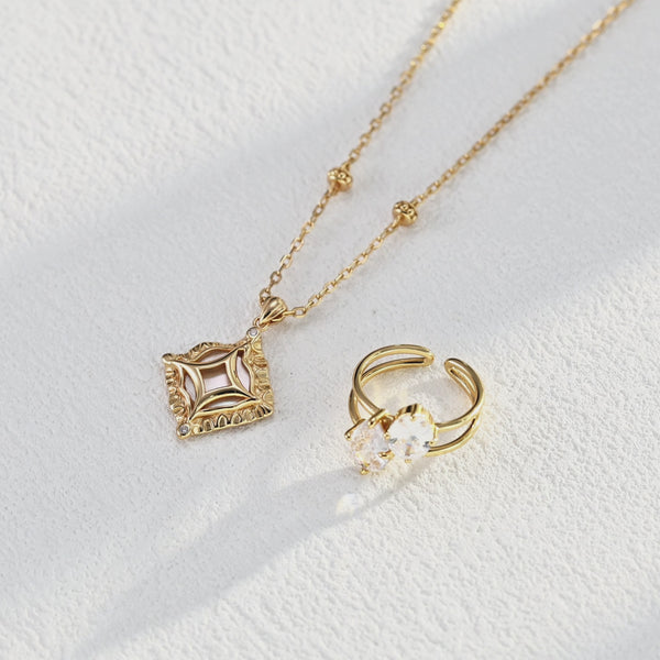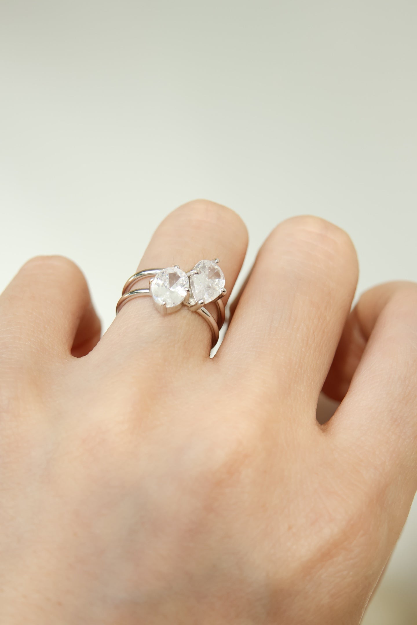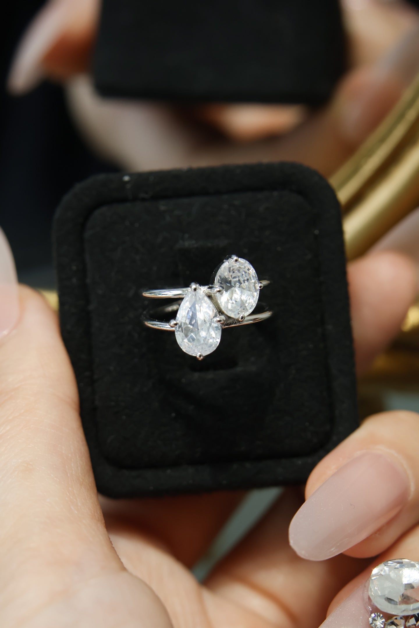 Niche Two-Stone Sterling Silver Ring - Gold-Tone Cluster Design, Romantic Statement Jewelry for Women