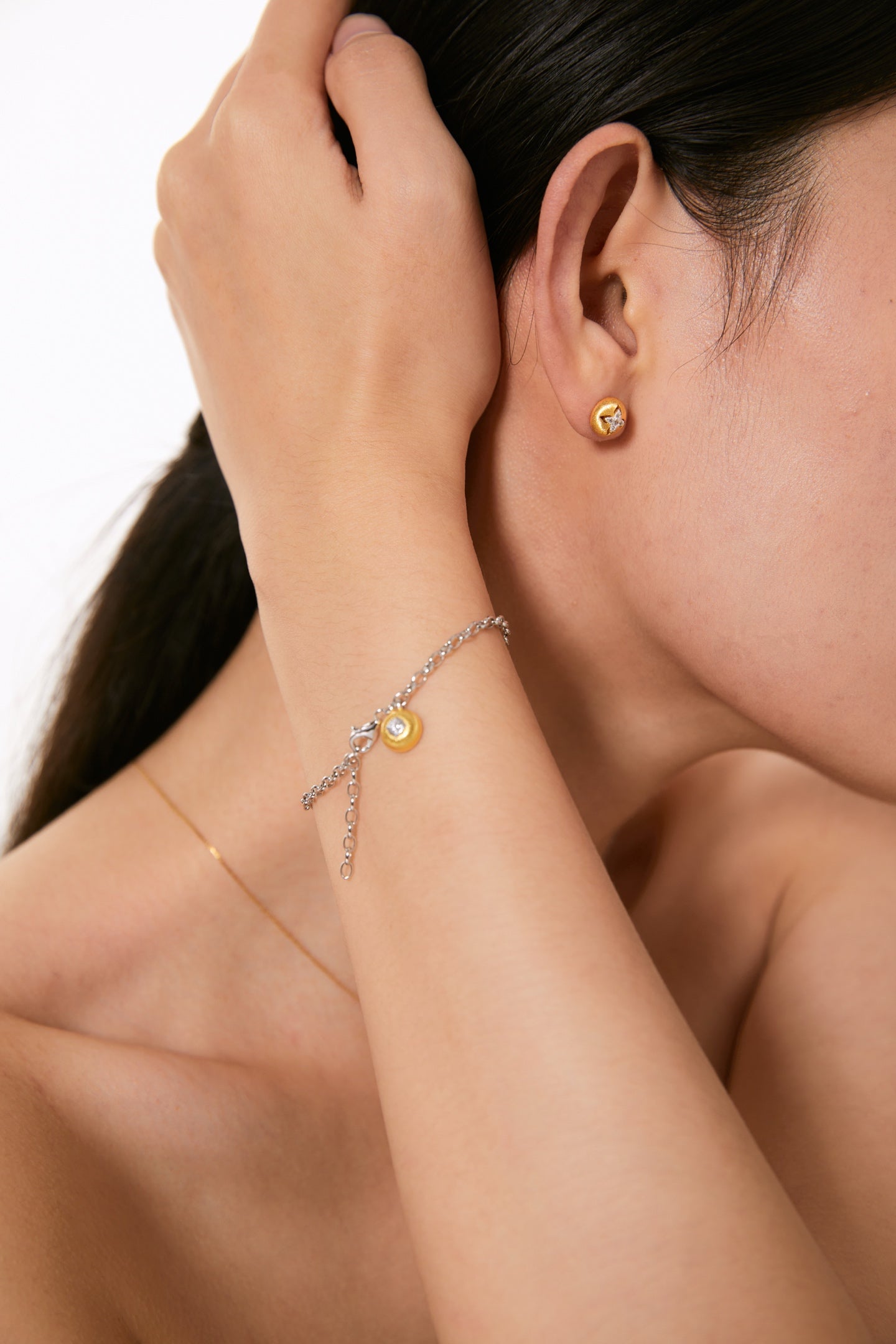 Niche Two-Tone Charm Sterling Silver Bracelet - Minimalist Elegant Design, Statement Jewelry for Women