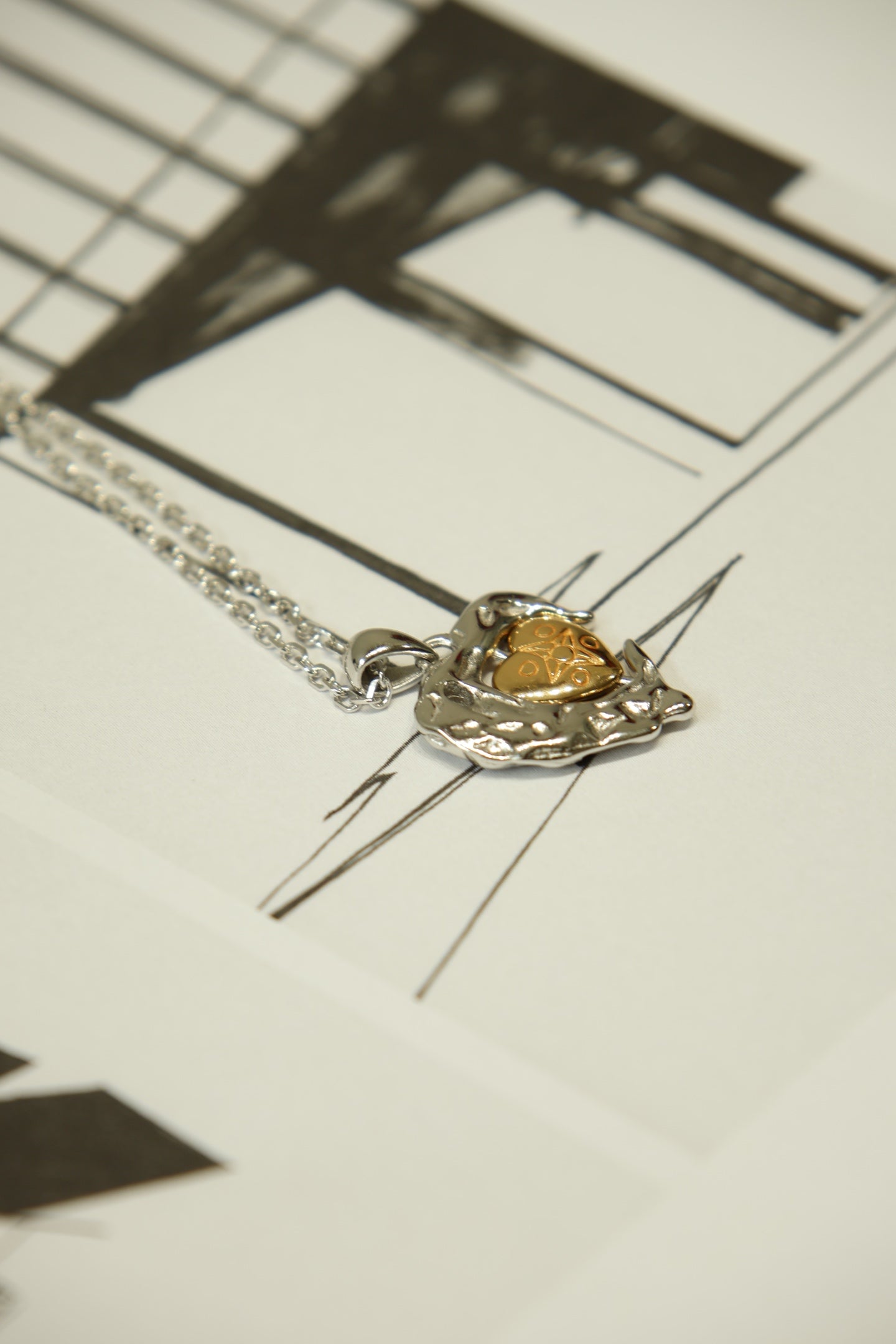 Niche Two-Tone Heart Sterling Silver Necklace - Textured Zircon Design, Romantic Statement Jewelry for Women