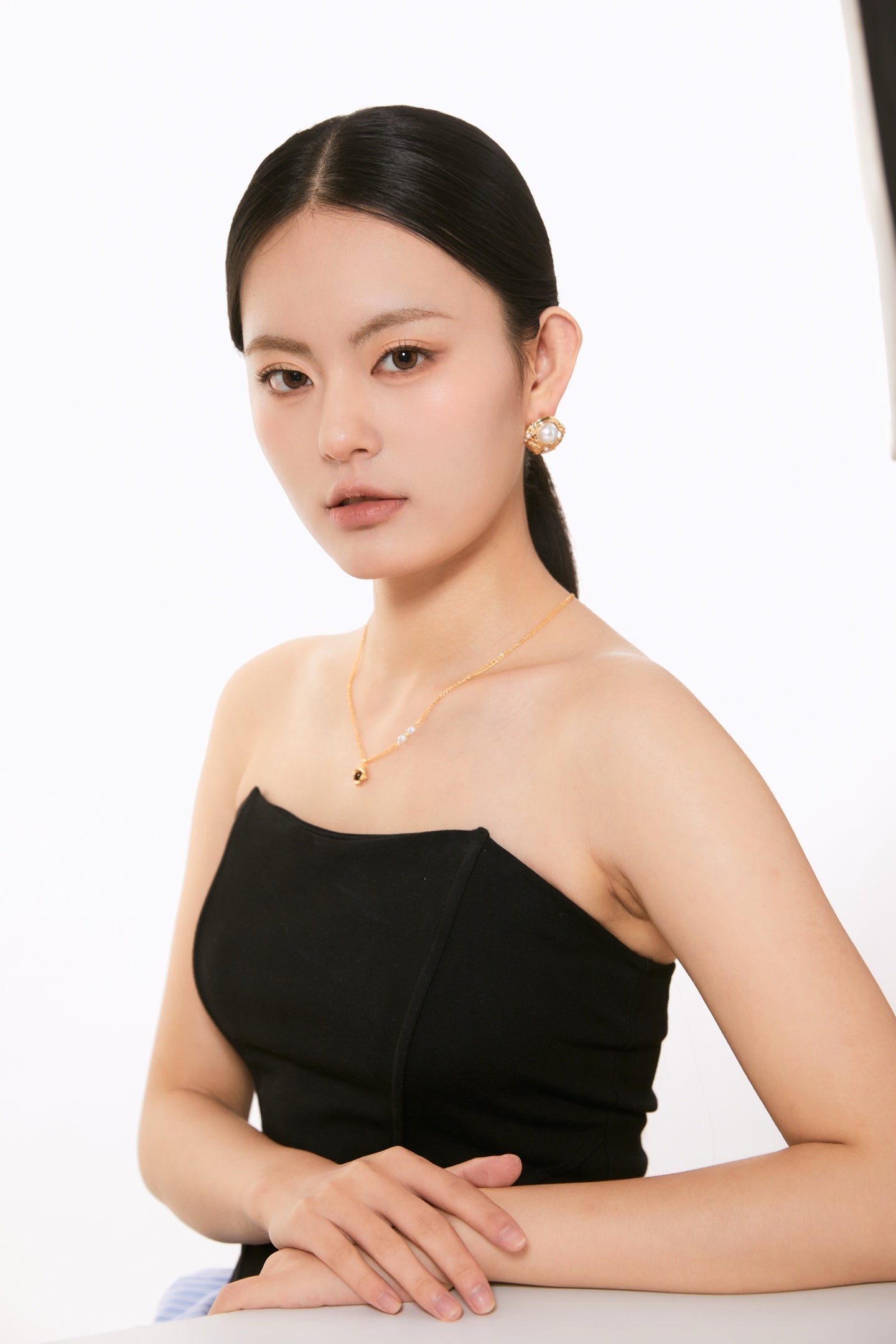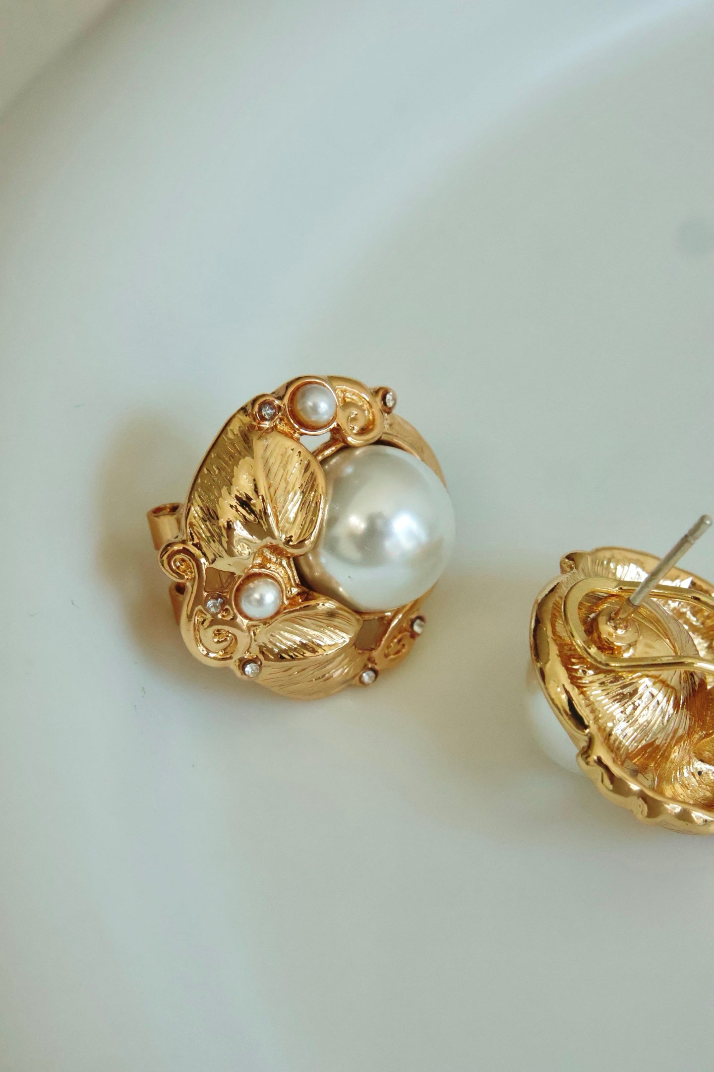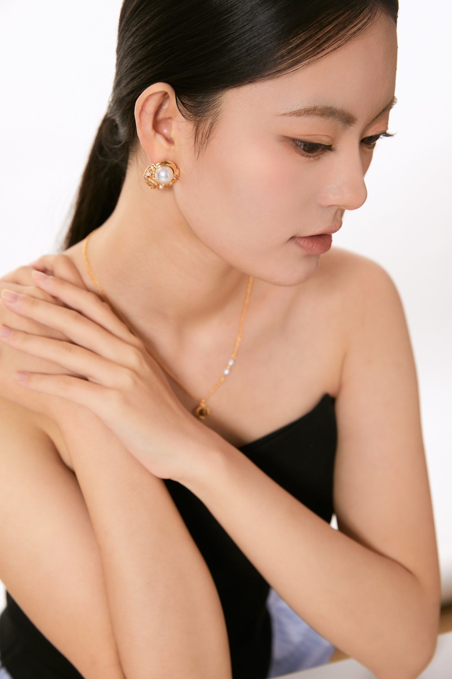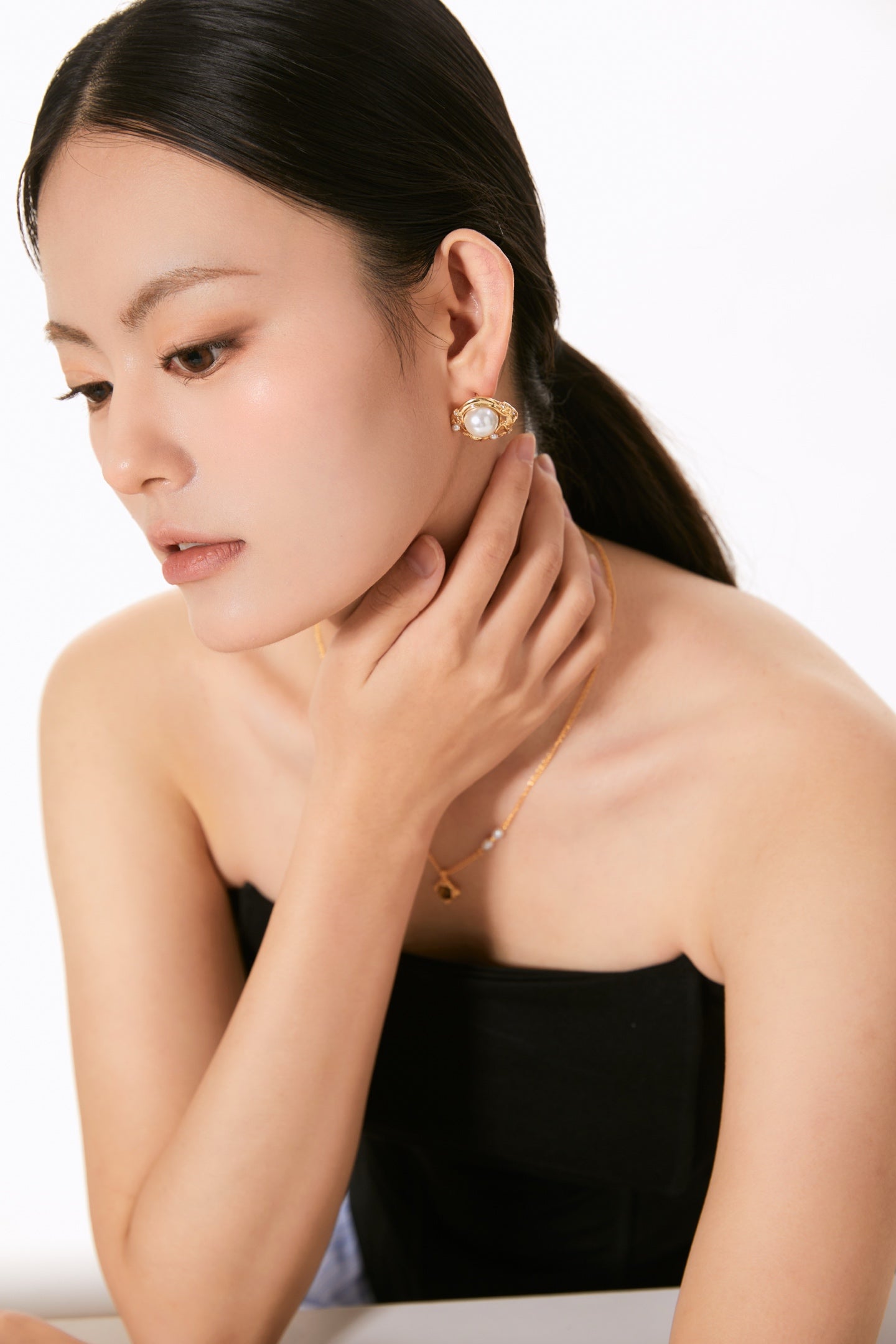 Niche Vintage Pearl Sterling Silver Earrings - Gold-Tone Zircon Design, Retro Statement Jewelry for Women