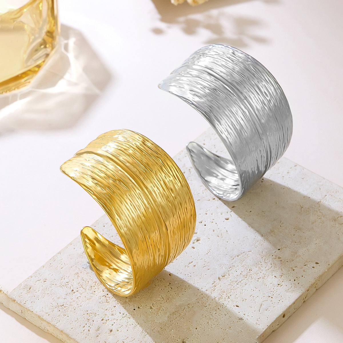 Retro Bold 3D Leaf Relief Bracelet | Niche Design with Gold Irregular Bamboo Leaf & Textured Premium Open Style