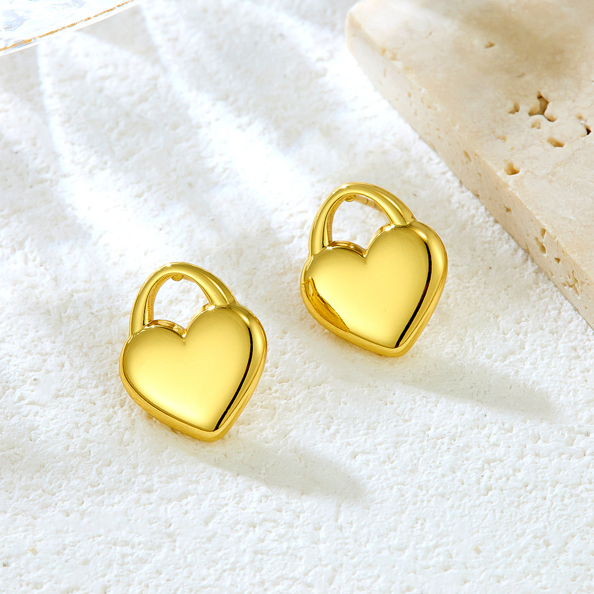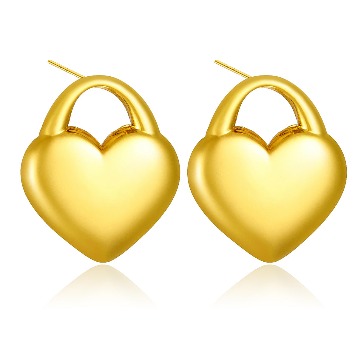 Cross-Border Stainless Steel Small Heart Stud Earrings for Women, Fashionable Minimalist 3D Heart Padlock Earrings, Factory In-Stock Wholesale Jewelry