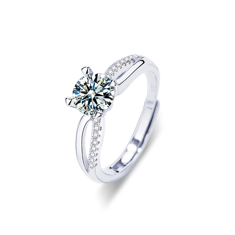 S925 Sterling Silver Moissanite Couple Rings, Minimalist Six-Claw & Plain Band Engagement/Wedding Gift for Girlfriend