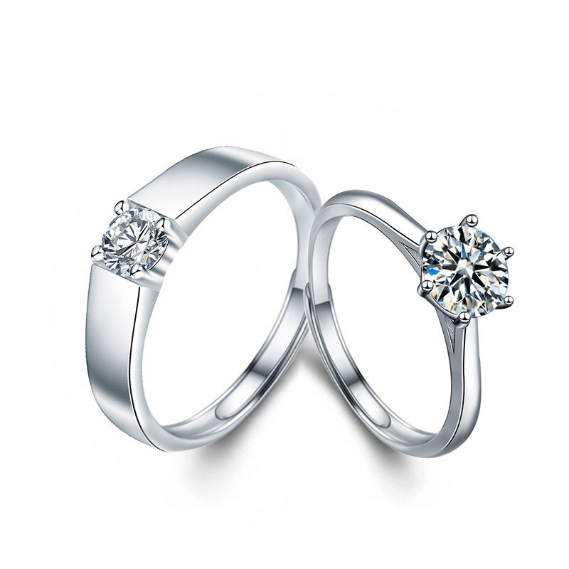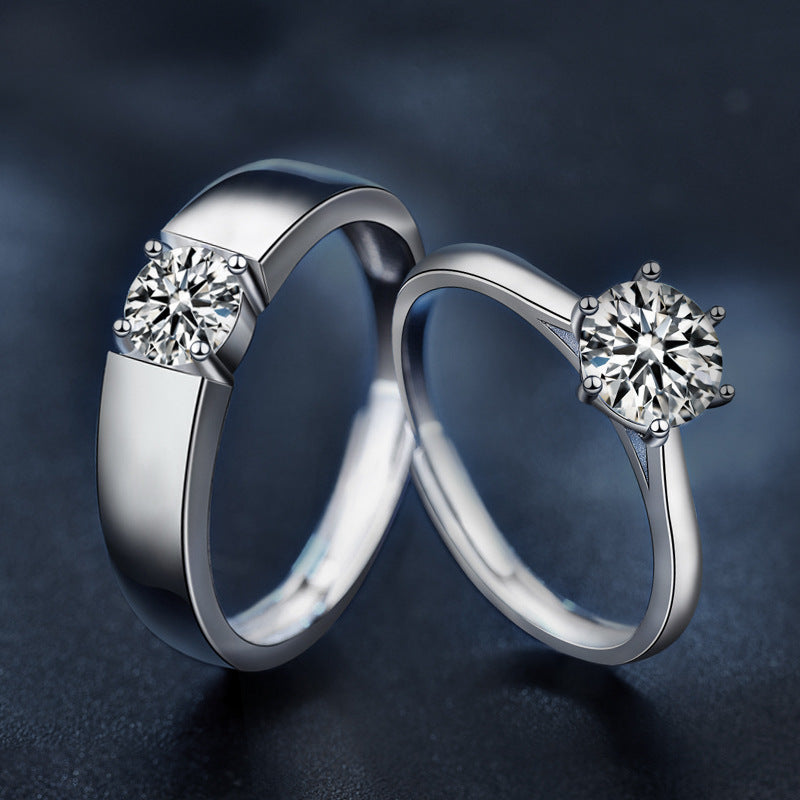 S925 Sterling Silver Adjustable Couple Rings Set for Him & Her, Fadeproof High-End Six-Claw Moissanite Rings
