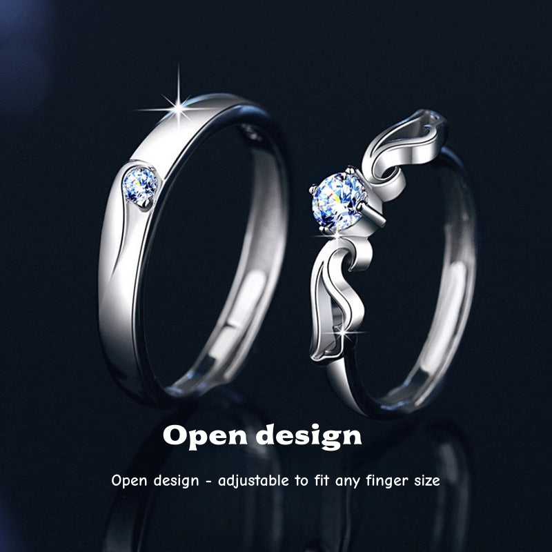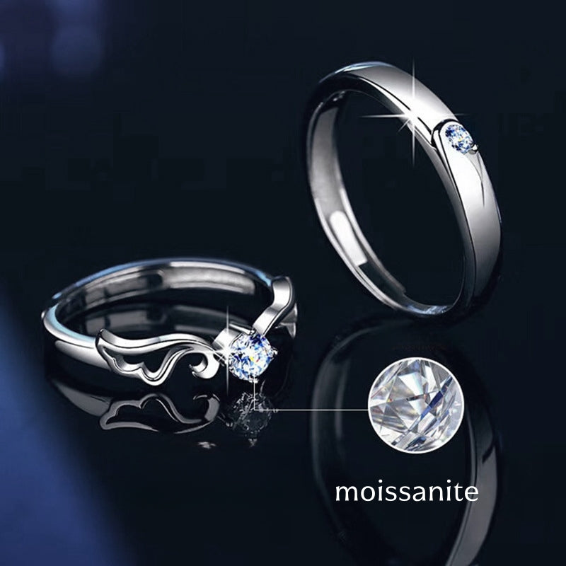 S925 Sterling Silver Angel Wings Moissanite Couple Rings, INS Minimalist Open Engagement/Wedding Ring Settings