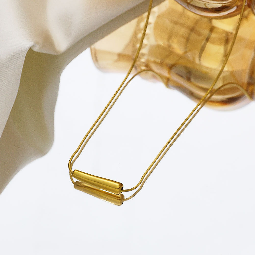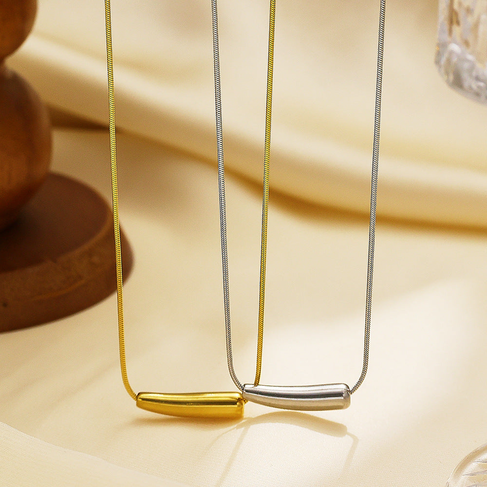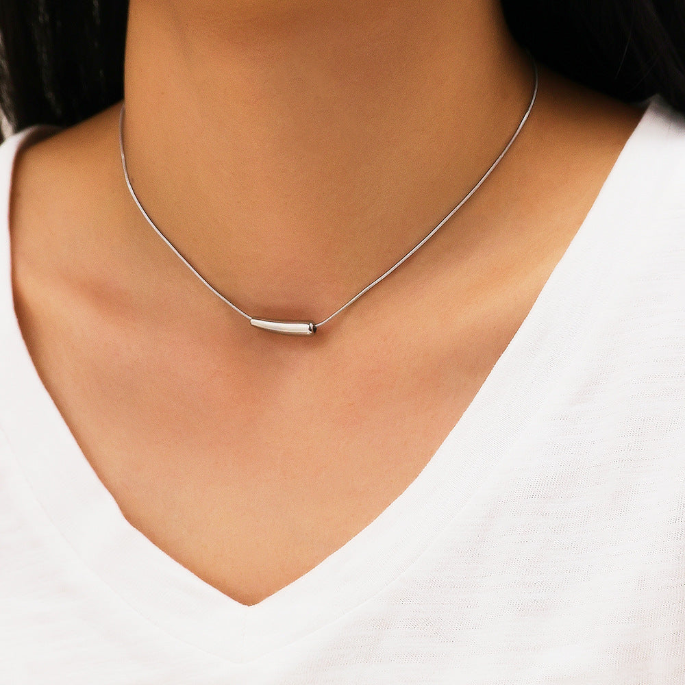 Stainless Steel Sweater Chain - Minimalist Geometric Bead Collarbone Chain, Irregular Eggplant & Smile Pendant Necklace for Wome