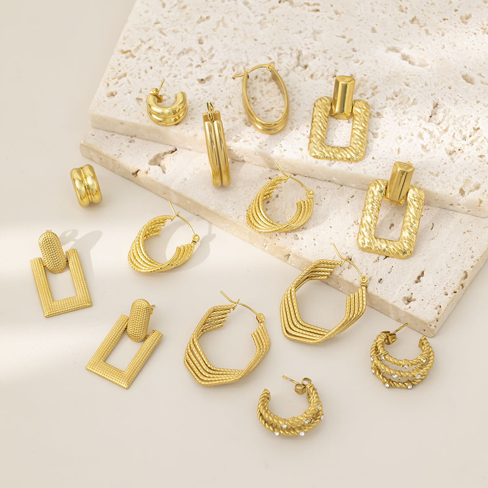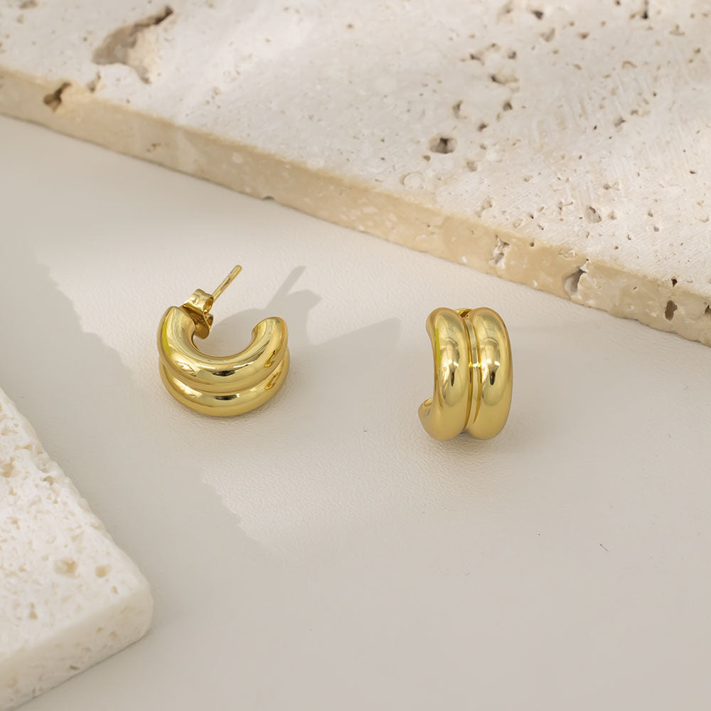 Wholesale Chic & Unique Double C-Hoop Earrings, Minimalist Stainless Steel Geometric Ear Cuffs for Hot Sale