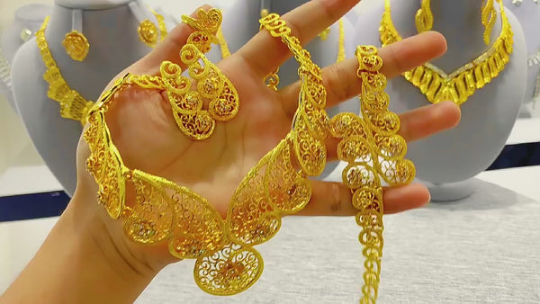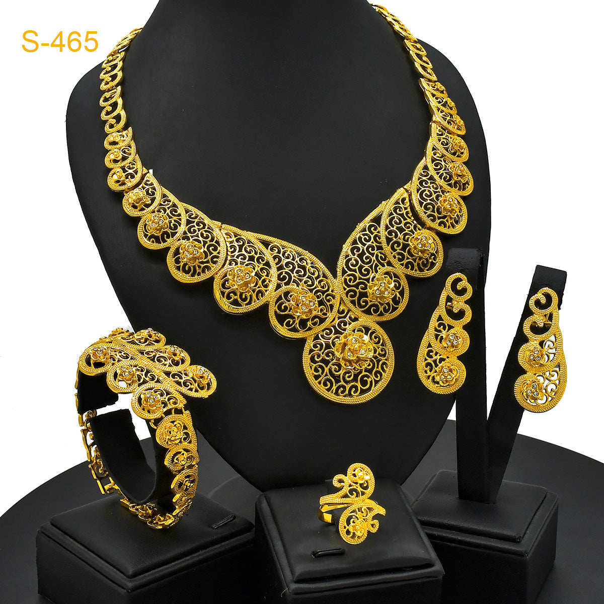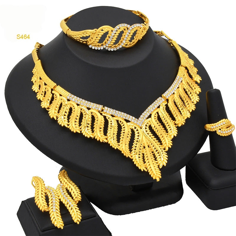 Wholesale Dubai 24K Gold Bridal Jewelry Set, Ready-to-Ship Wedding Gift for Brides