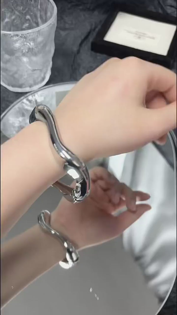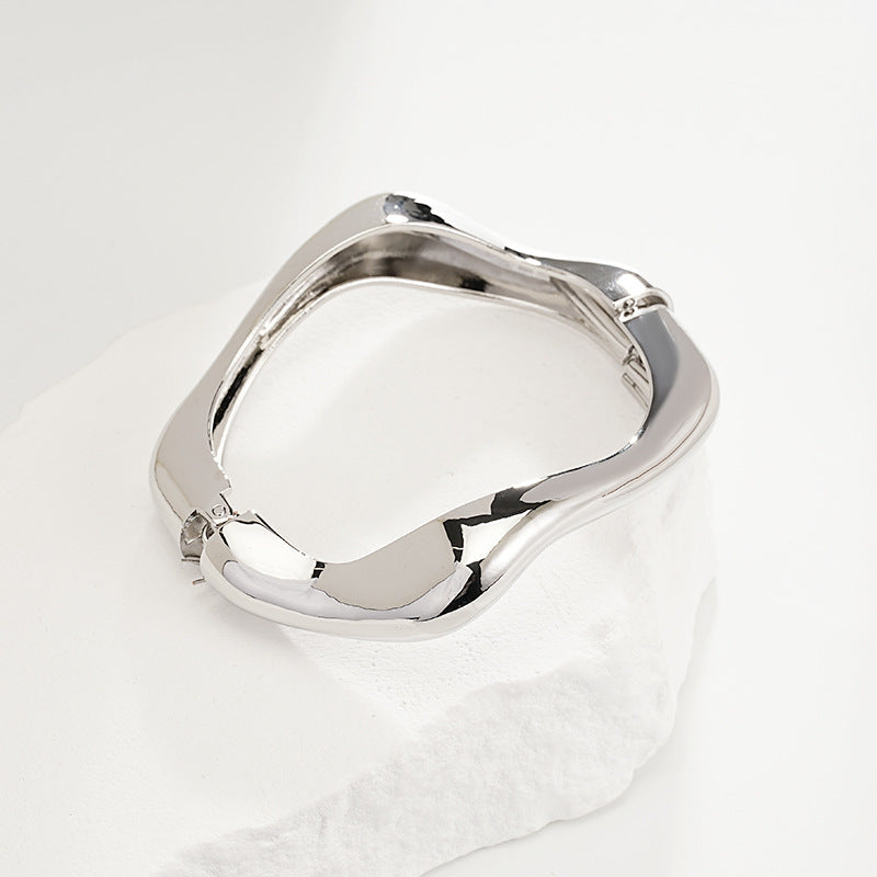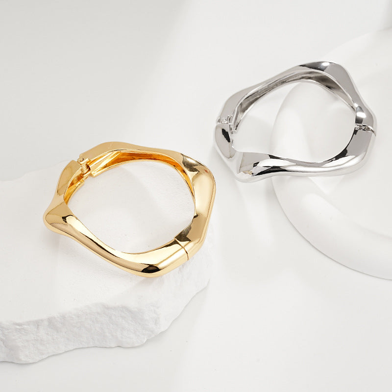 Women's Artisanal Wave Bracelet - Irregular Design, High-Shine Finish, Light Luxury Aesthetic