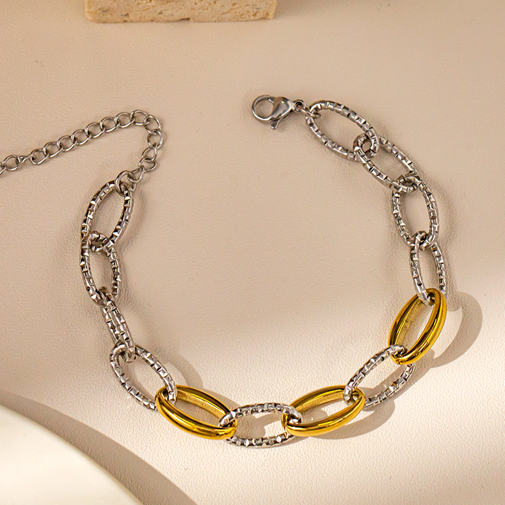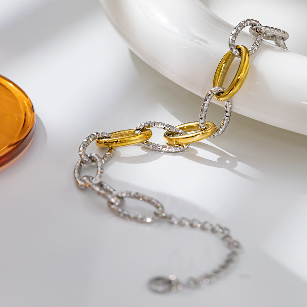 Women's Light Luxury Titanium Steel Bracelet - 18K Plated Color-Blocked Hammered Thick Chain, Non-Fading High-End Jewelry