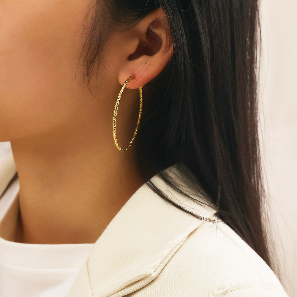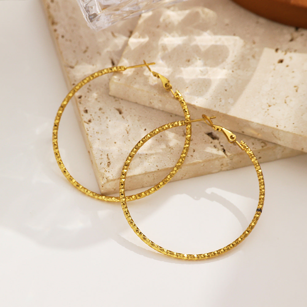INS Style Titanium Steel Earrings for Women - Light Luxury Gold Oversized Hoops, High-End Minimalist Cool-Tone Design, Non-Fading