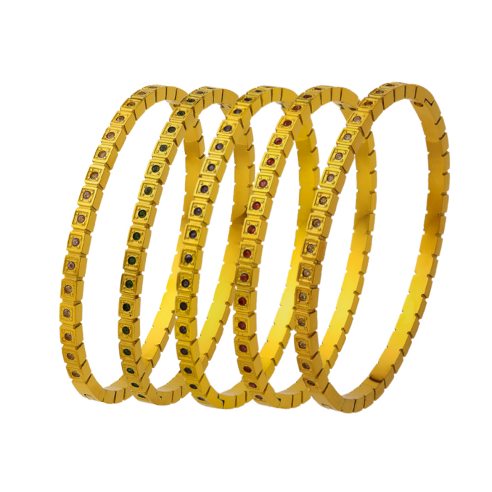 European and American INS-style Fashion Bracelet, Square Checkered Zircon Bangle, Colored Full-Zircon Fine Stainless Steel Bracelet for Women